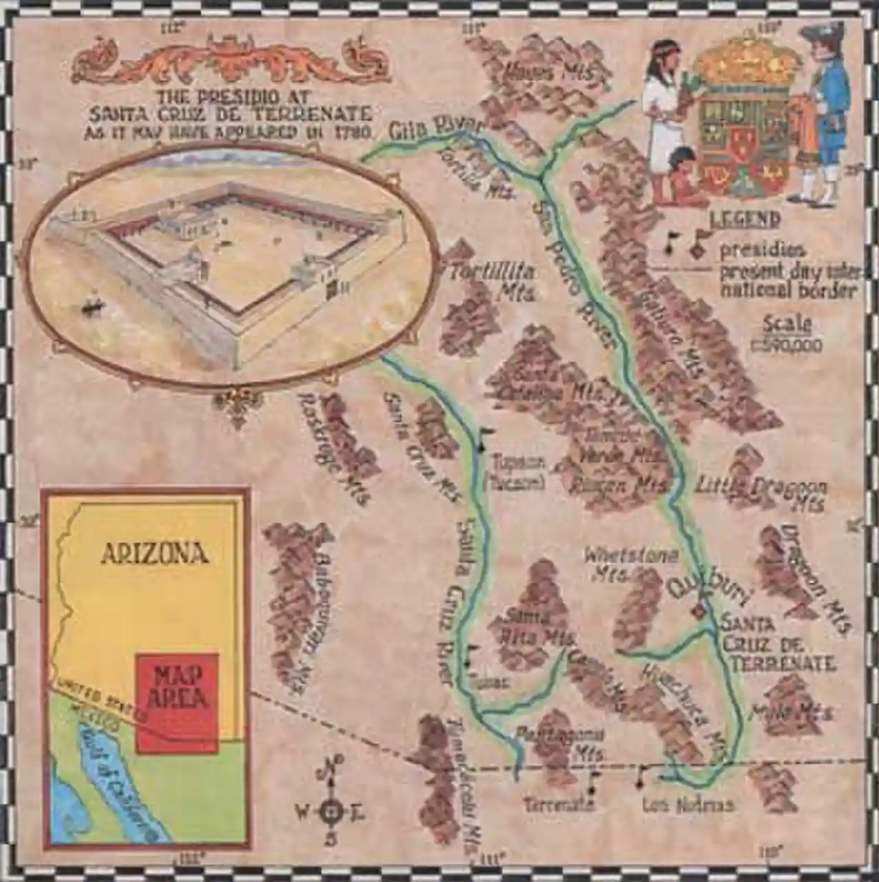 The Presidio Santa Cruz de Terrenate is a former Spanish military presidio, or fortress, located roughly west of the town of Tombstone, Arizona, in the United States of America. Read more on Wikipedia