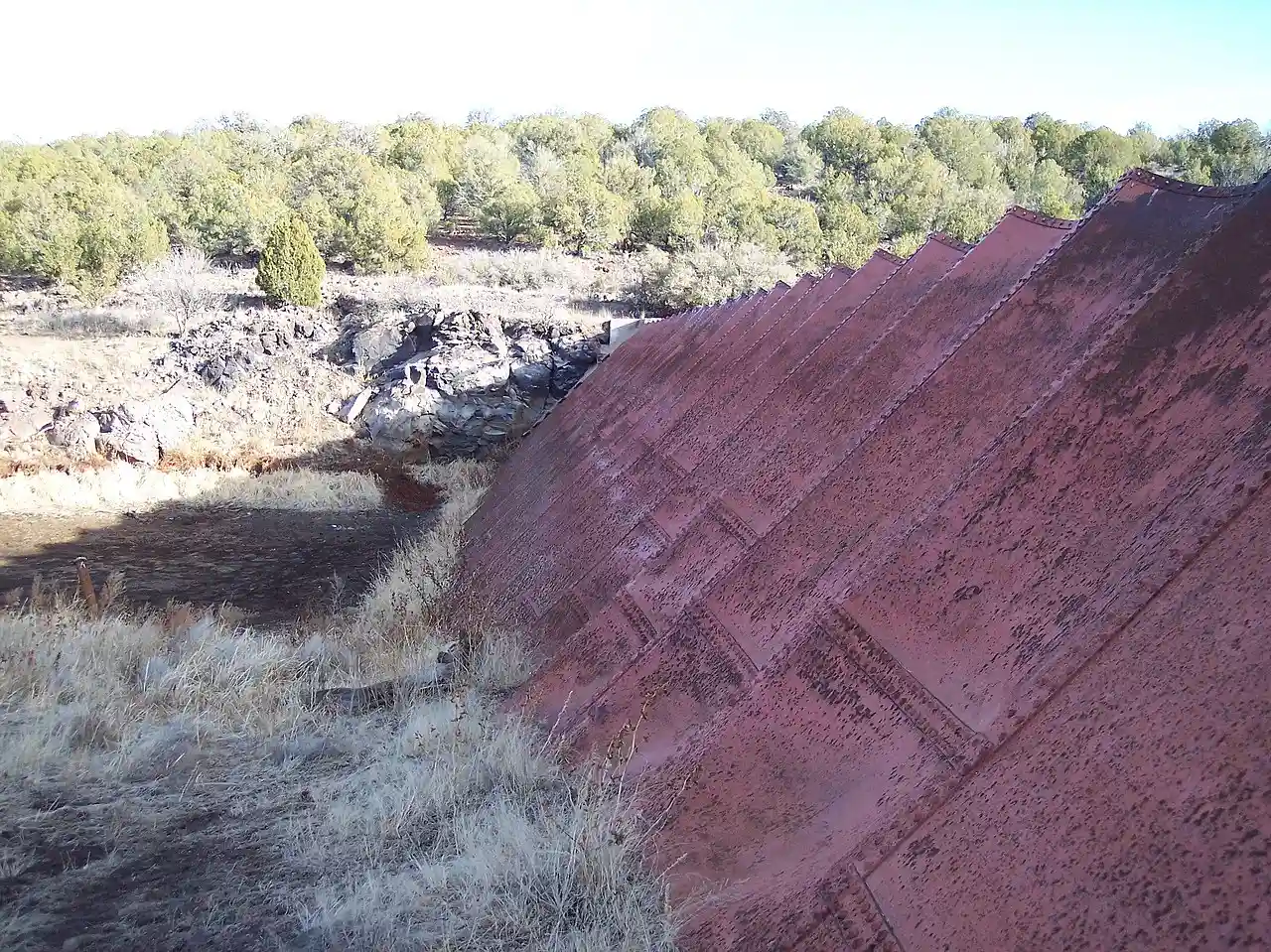The Ashfork Bainbridge Steel Dam, the first large steel dam in the world, and one of only three ever built in the United States, was constructed in 1898 by the Atchison, Topeka and Santa Fe Railway (ATSF) to supply water for railway operations near Ash Fork, Arizona. It is named for the town of Ash Fork, and for Francis H. Bainbridge, a civil engineer and graduate of Rensselaer Polytechnic Institute (RPI), a member of the Rensselaer Society of Engineers, and an engineer for ATSF.According to material found in this PDF: Arizona Society of Civil Engineers 150th anniversary booklet, Bainbridge invented the steel dam and obtained a United States patent on it, No. 537,520, filed September 11, 1894 The dam has been listed on the National Register of Historic Places since 1976. Read more on Wikipedia