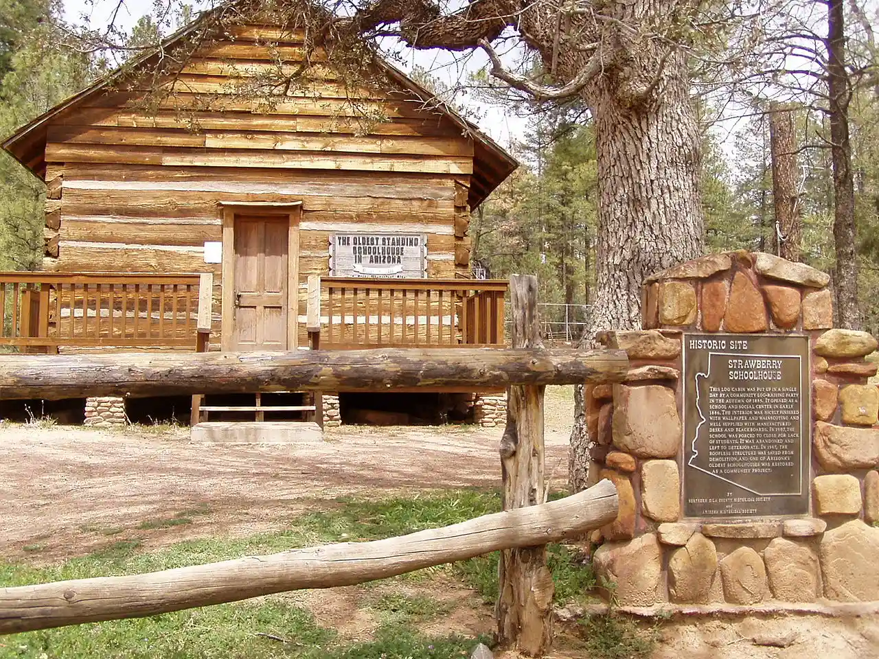 The Strawberry Schoolhouse is a historic one-room school building located in northwestern Gila County, Arizona, in the small mountain community of Strawberry. Built of pine logs in 1885, the Strawberry Schoolhouse is reputed to be the "oldest standing schoolhouse in Arizona" and now functions as a fully restored local history museum, complete with a late-19th century classroom exhibit. Read more on Wikipedia