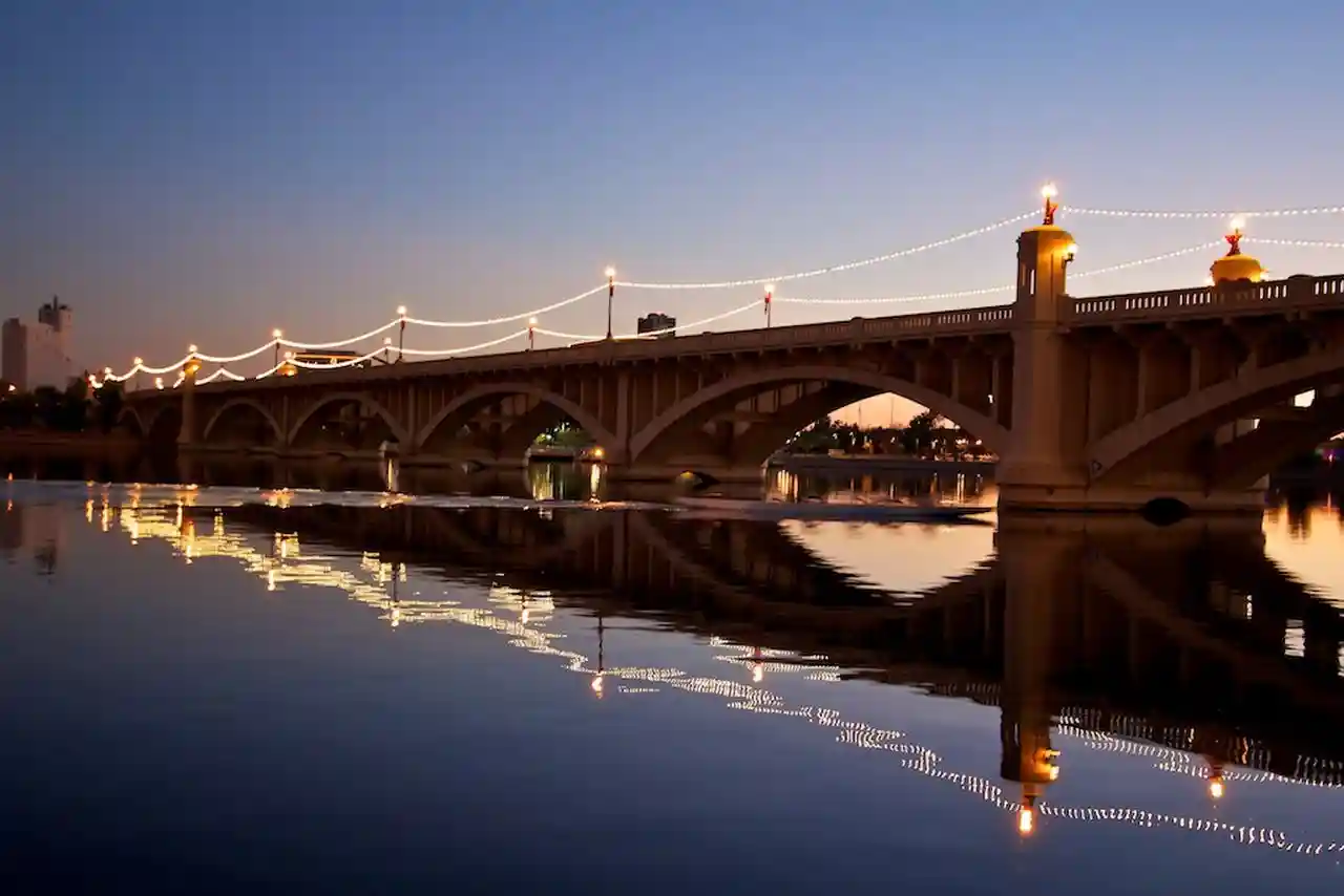 The Mill Avenue Bridges consist of two bridges that cross the Salt River in Tempe, Arizona, at the north end of the shopping district on Mill Avenue. The first bridge opened in August 1931 and the second bridge opened in 1994. Read more on Wikipedia