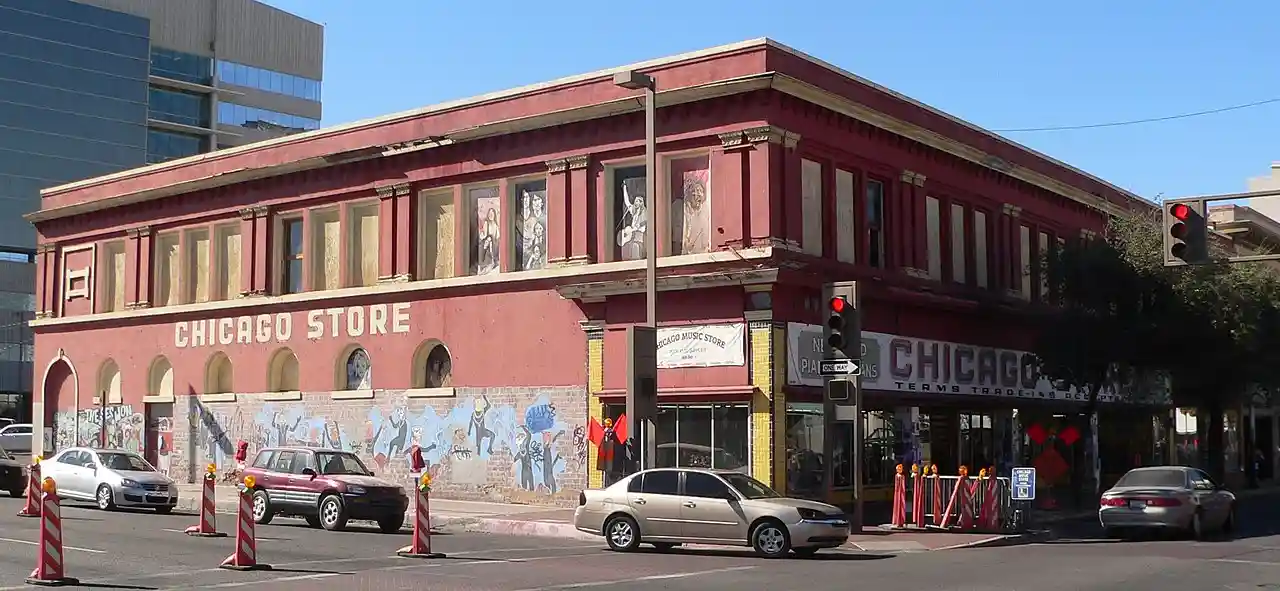 The J. C. Penney–Chicago Store is a historic department store building in downtown Tucson, Arizona. Built in 1903 for the Los Angeles Furniture Co, it housed J. C. Penney by July 25, 1942. In 1957, after J. C. Penney moved to the west side of Stone Avenue just north of Pennington Street, Aaronson Brothers moved in. The Chicago Store moved in after the El Pasobased department store closed in 1967. This building had the last complete original vintage interior in Downtown Tucson with stamped tin ceilings and period woodwork until it was completely gutted in 2020-2022. Read more on Wikipedia