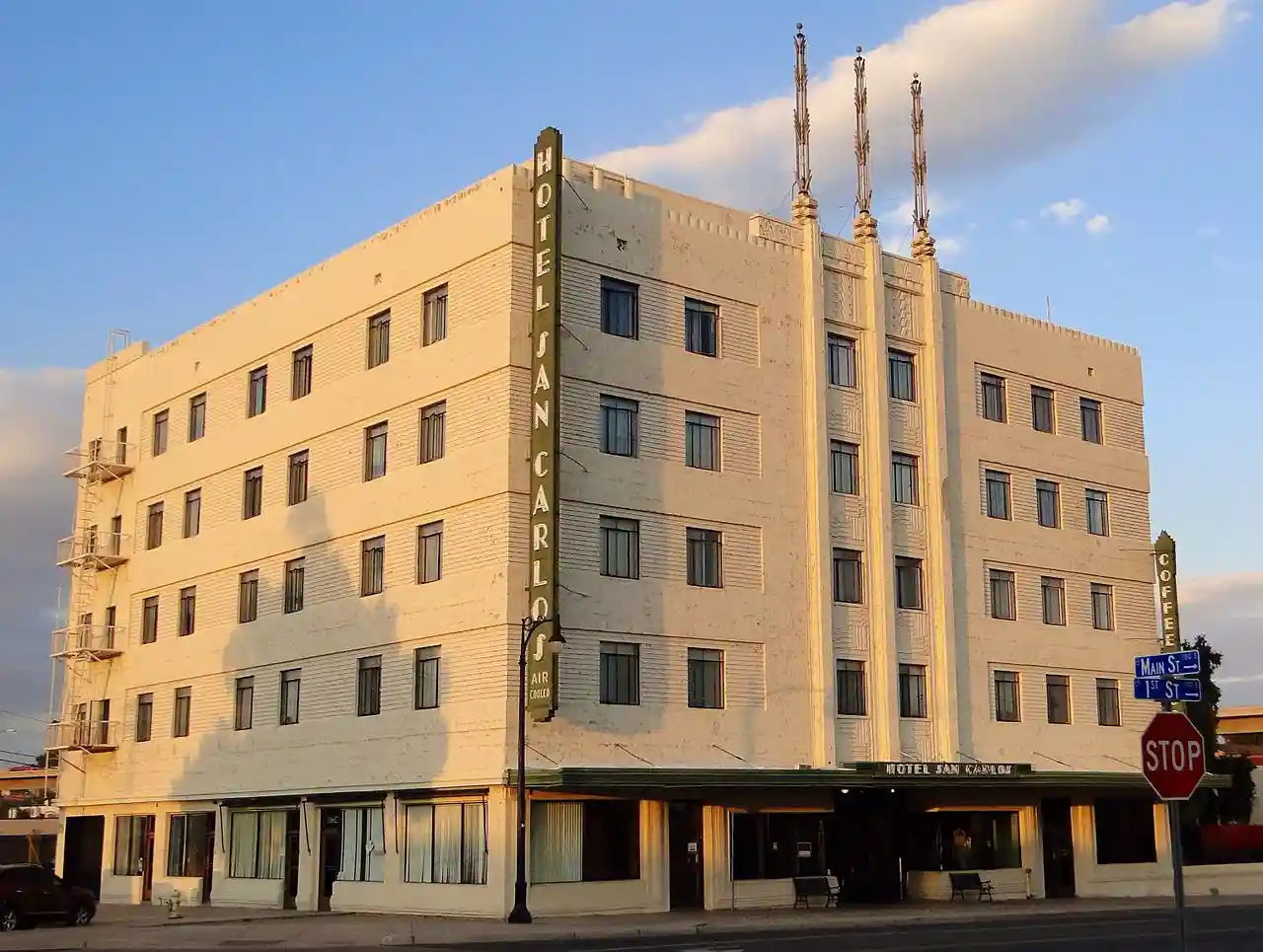 The San Carlos Hotel is a historic hotel in Yuma, Arizona. Its construction cost $300,000, and it was completed in 1930. With It was five stories high, with 107 bedrooms. It was remodelled into 59 residential apartments in the 1980s. Read more on Wikipedia