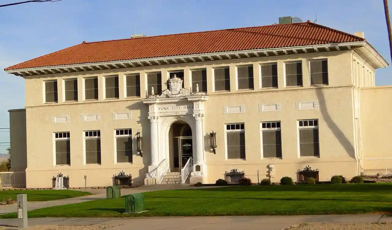 The Yuma City Hall is a historic building in Yuma, Arizona. It was built in 1921, and it served as Yuma's city hall for many years. With It was designed by Lyman & Place in the Spanish Colonial Revival architectural style. It has been listed on the National Register of Historic Places since December 7, 1982. Read more on Wikipedia