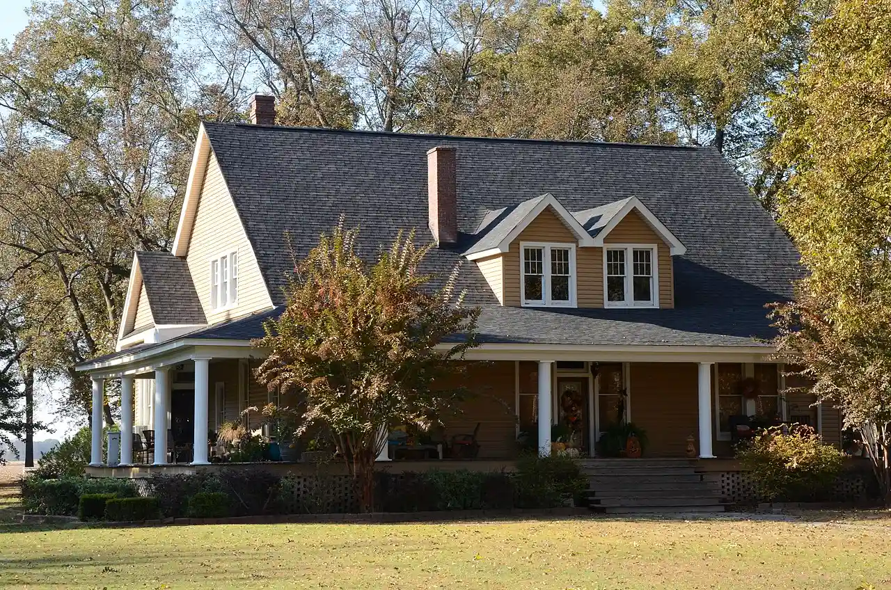The Dean House is a historic house off U.S. Route 165 in Portland, Arkansas. The -story house was designed by architect Charles L. Thompson and built c. 1910. Stylistically, it is a Creole cottage, a simple rectangular shape mounted in a foundation with brick piers. The roof extends over a wraparound porch, which is supported by Tuscan columns. The roof is pierced by a pair of gabled dormers that are decorated with fish-scale shingles. Read more on Wikipedia