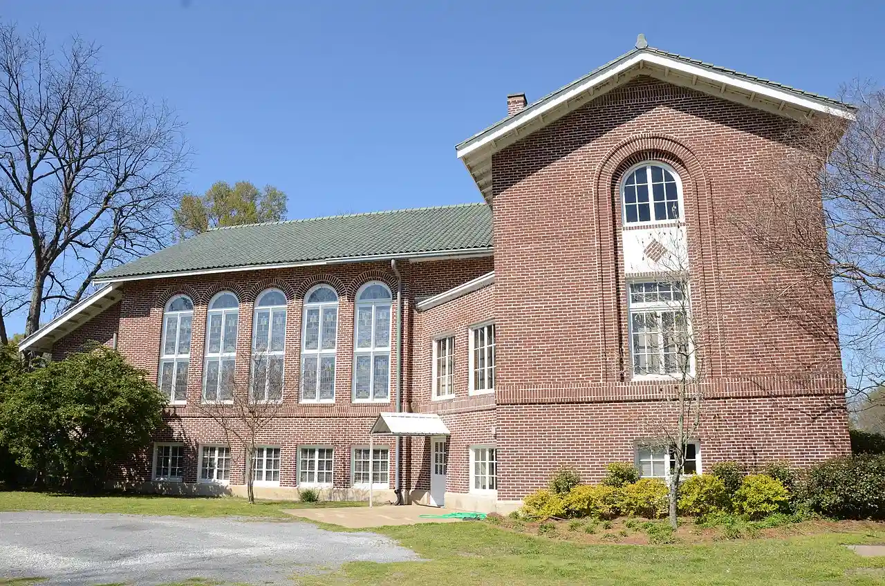 The Portland United Methodist Church is a historic church building at 300 N. Main St. in Portland, Arkansas The Craftsman style two story T-shaped building was built in 1924 to a design by architect John Parks Almand. The building is faced in brick laid in a running bond pattern. The roof is ceramic tile, with broad overhanging eaves supported by distinctive triangular knee braces. The building is the largest and most prominent building in Portland's small downtown area. Read more on Wikipedia