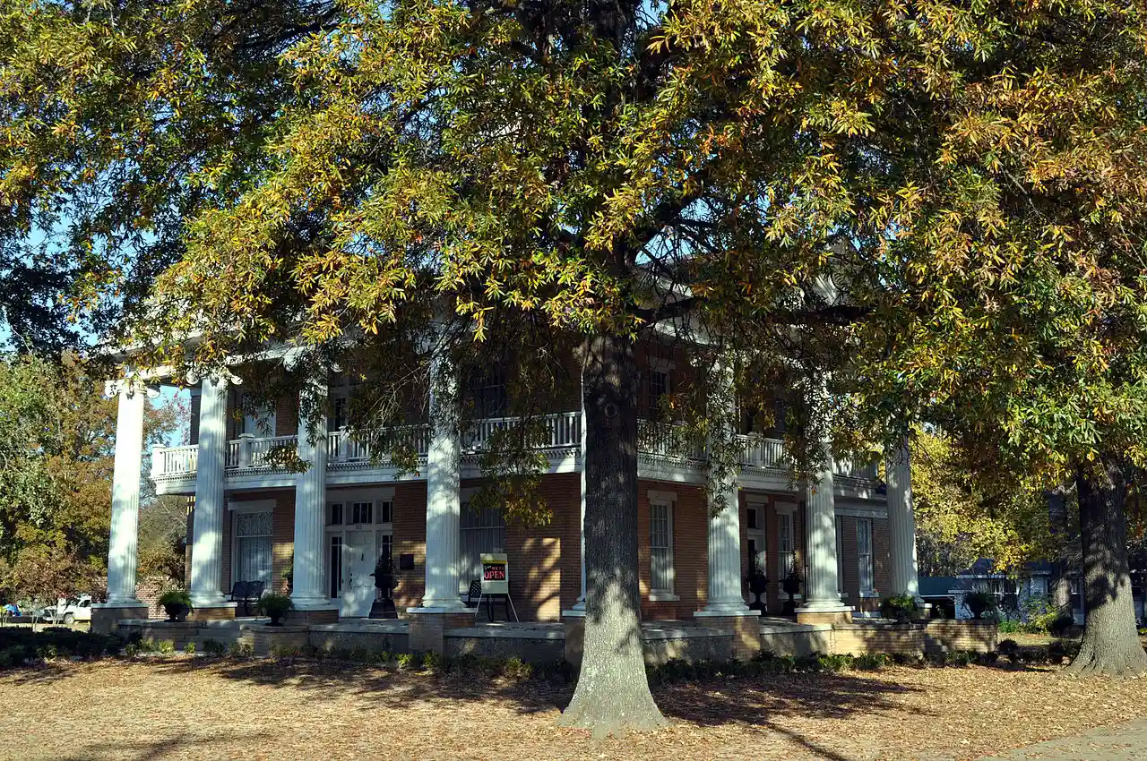 The Watson House is a historic house at 300 N. Cherry Street in Hamburg, Arkansas. The two story Colonial Revival brick house was built in 1918, and features verandas on its street-facing elevations. The verandas are supported by large Ionic columns that rise two full stories to support the roof, with the second floor veranda supported by cables suspended from above. The large-proportioned house is one of the most prominent buildings in Hamburg. It was designed and built by W. C. Bunn for David Watson, owner of a successful local hardware store. Read more on Wikipedia