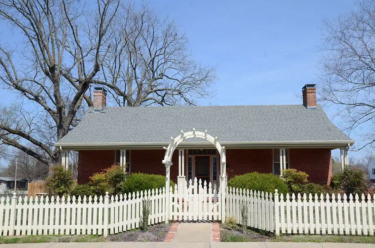 The Braithwaite House is a historic house at Bella Vista Drive and Braithwaite Street in Bentonville, Arkansas. Built , this single-story brick house may be the oldest house in Benton County, and is the only one of its type in the city. Its form is similar to a saltbox with a side gable roof that has a short front slope and an extended rear slope. An open porch with a shed roof extends across the front. The house was by James Haney, an Irish brick mason, for the Braithwaites, who were major local landowners. Read more on Wikipedia