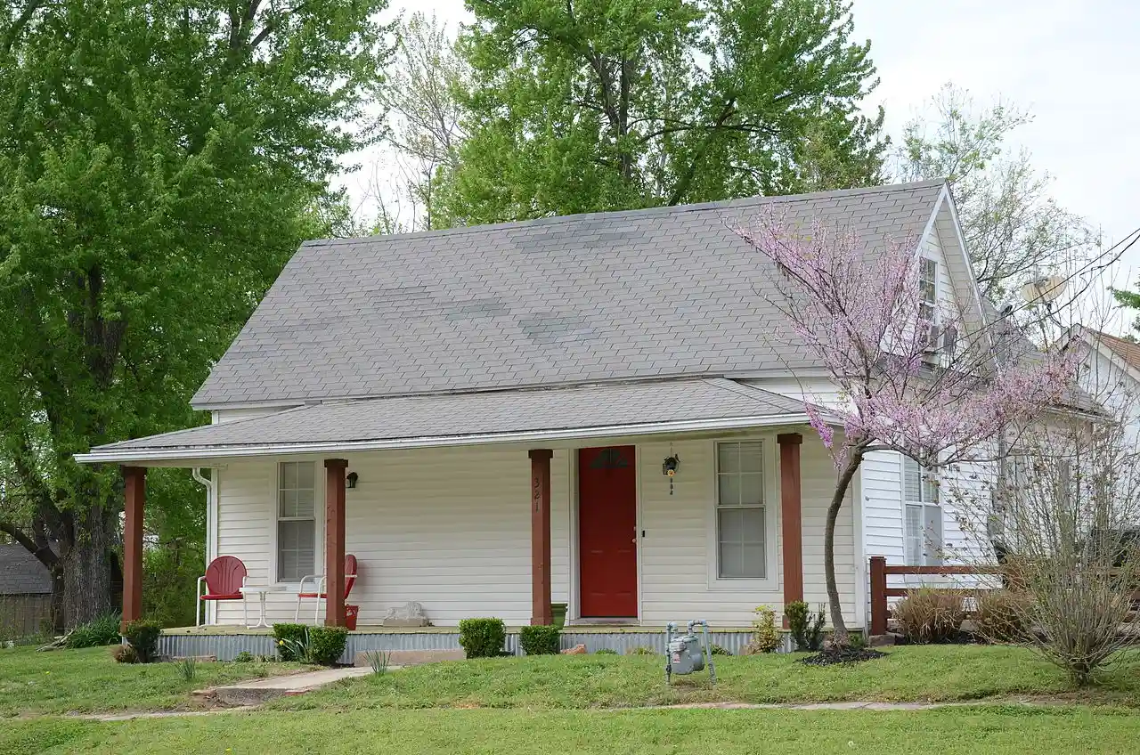 The Bryan House No. 2 is a historic duplex house at 321 East Locust Street in Rogers, Arkansas, United States. It is a single-story double pen frame structure, with a side gable roof. A one-story ell extends to the rear on one side. A porch with turned columns extends the full width of the structure, sheltering the two main entrances. Built c. 1900, this is the best-preserved of a modest number of surviving houses of this type in Rogers, which were once much more numerous. Read more on Wikipedia