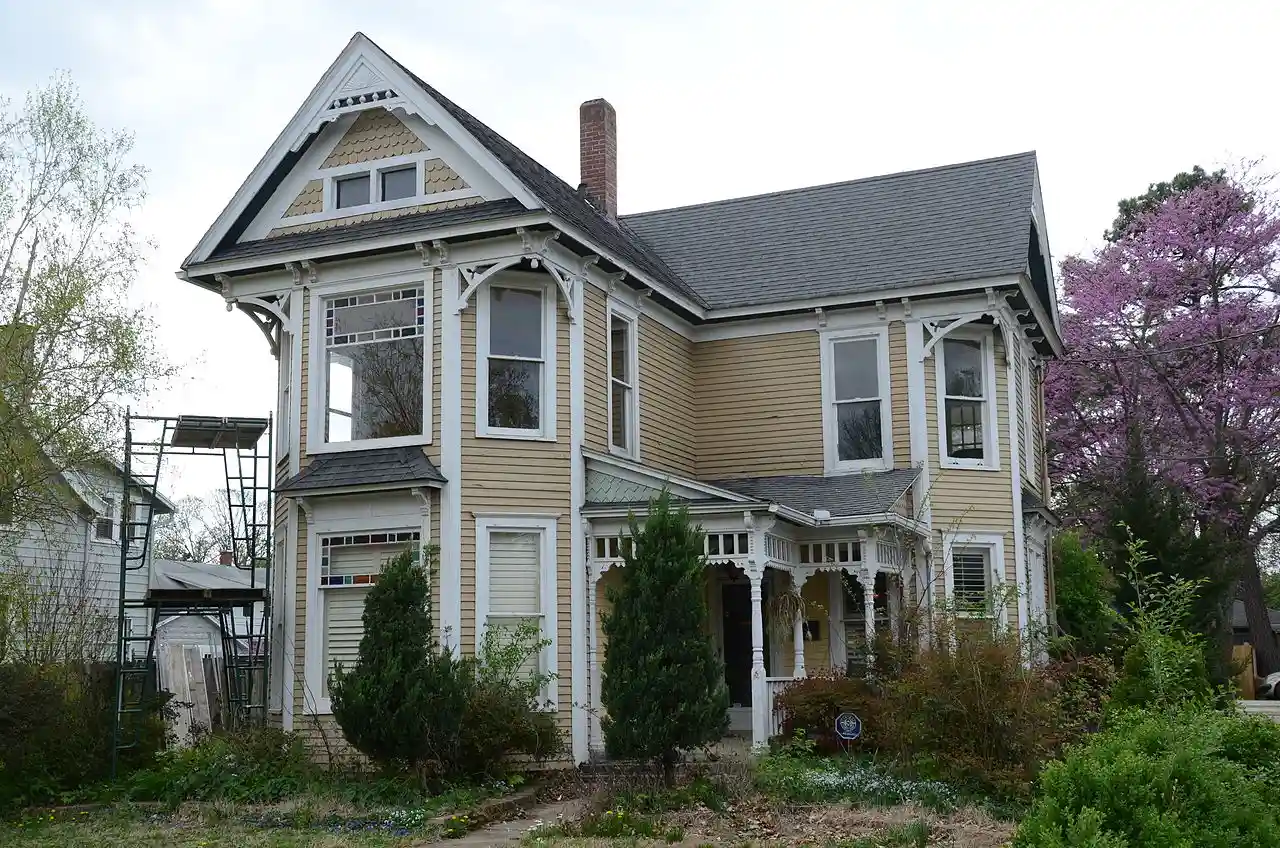 The Campbell House is a historic house at 714 West Third Street in Rogers, Arkansas. It is a two-story L-shaped wood-frame structure with clapboard siding. Its corners are beveled, with overhanging gable corners above, and decorative woodwork in the gable ends above. The entry porch, in the crook of the L, is supported by turned columns with a spindled latticework frieze. The house is a fine local example of Eastlake architecture. Read more on Wikipedia