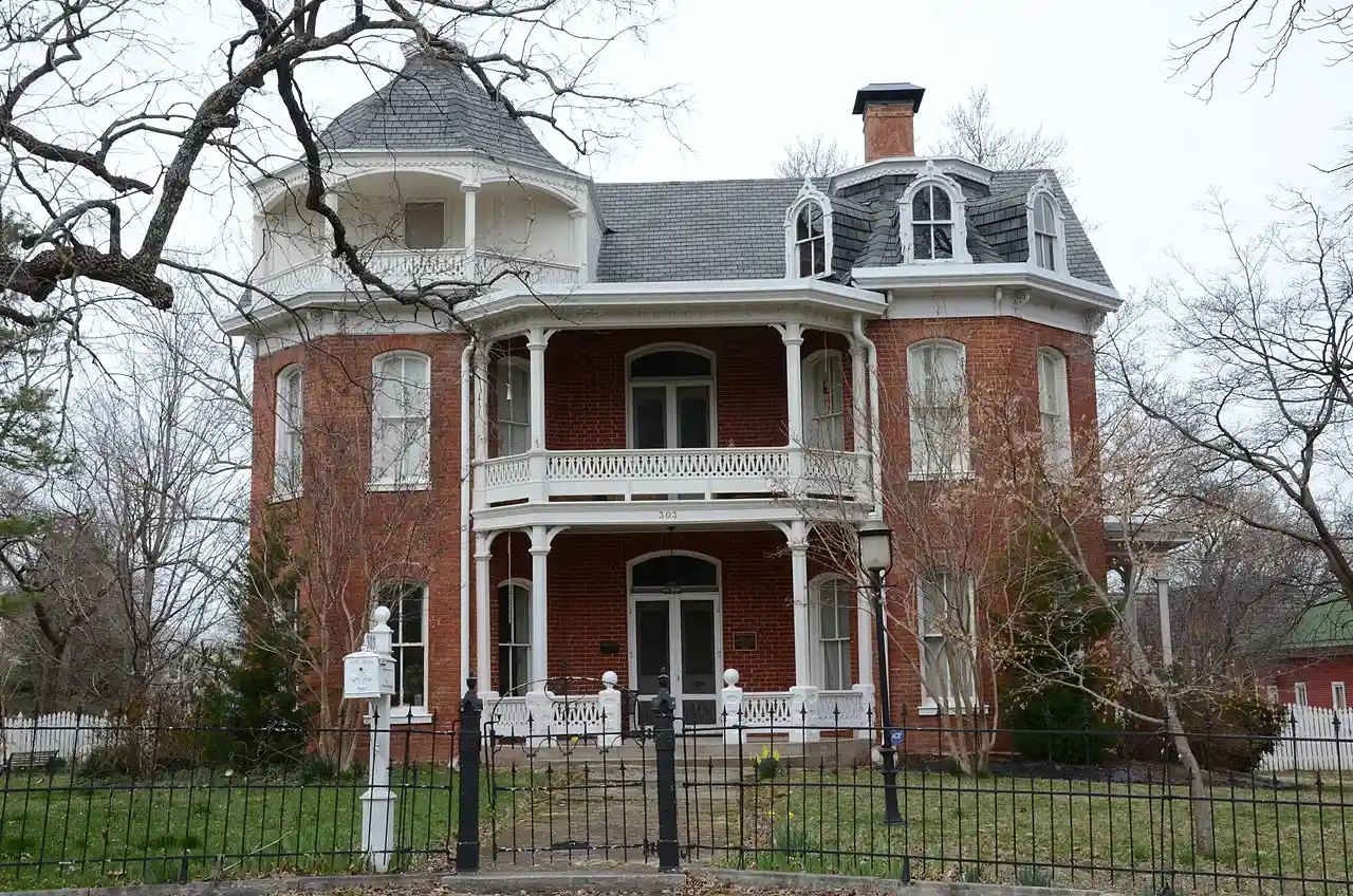The Elliott House is a historic house at 303 South Third Street in Bentonville, Arkansas. It is a large three-story brick house with Italianate style, built in 1887 for Harry Elliott, who made a fortune investing in silver mines in Silver City, New Mexico. The house is distinctive for its use of brick on the interior as well as exterior walls; those on the inside are thick, those outside are . The exterior features include seven porches, a widow's walk, and carved brackets in deeply overhanging eaves. Read more on Wikipedia