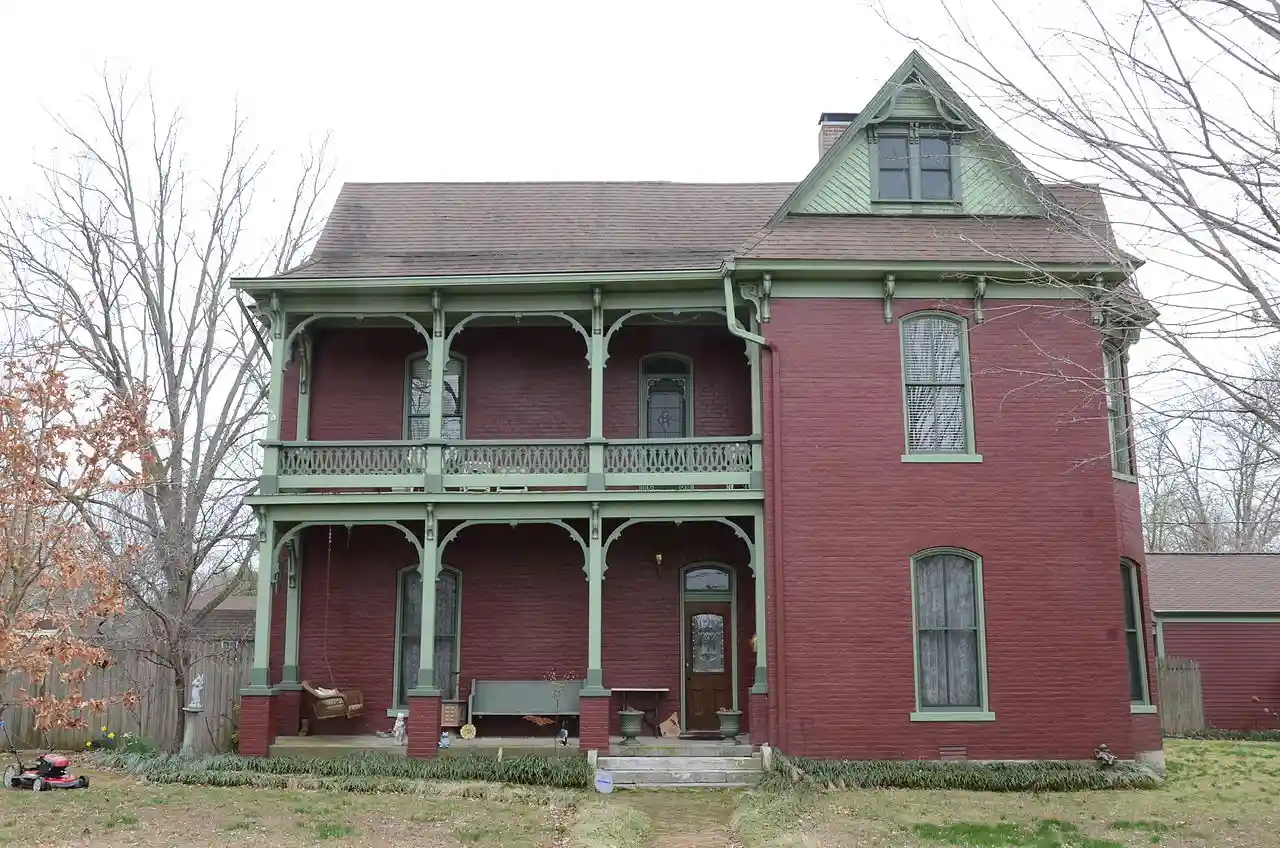 The James A. Rice House is a historic house at 204 Southeast Third Street in Bentonville, Arkansas. It is a -story brick structure, with tall arched windows and a bracketed cornice typical of the Italianate style. It has a two-story porch, asymmetrical massing, and a steeply pitched roof with cut-shingle gable finish typical of the Queen Anne style, which was in fashion when it was built c. 1879. Its builder and first owner was James A. Rice, a local lawyer who served two terms as mayor. Read more on Wikipedia