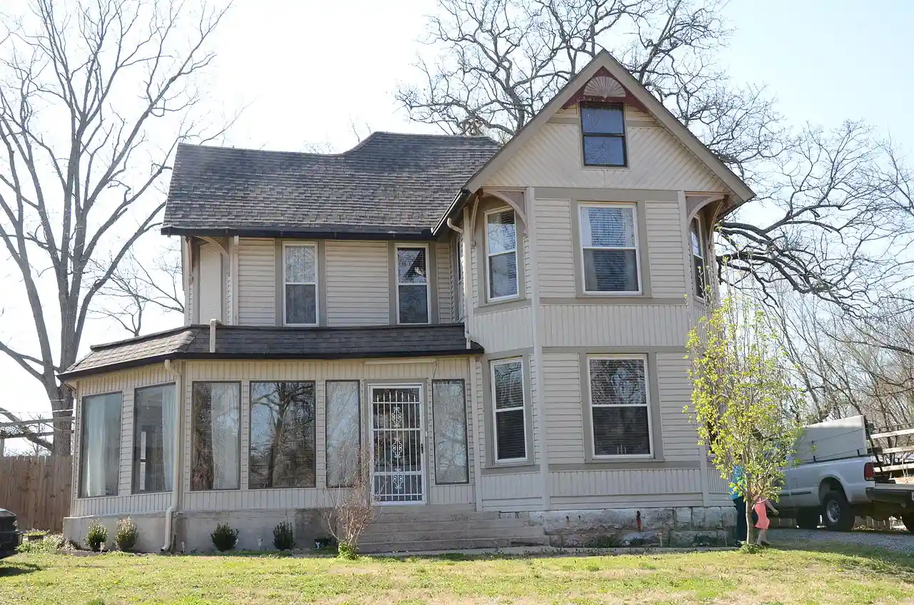 The Jones House is a historic house at 220 Bush Street in Sulphur Springs, Benton County, Arkansas. It is a -story wood-frame structure with a T shape and cross-gable roof. The front facade, one of the ends of the crosspiece of the T, has beveled corners with the roof overhanging above the second floor, an Eastlake element. A porch wraps around the stem of the T, which extends to the south. It is supported by turned columns and features a spindled frieze. Built c. 1896, it is a fine and well-preserved example of Eastlake-style architecture. Read more on Wikipedia
