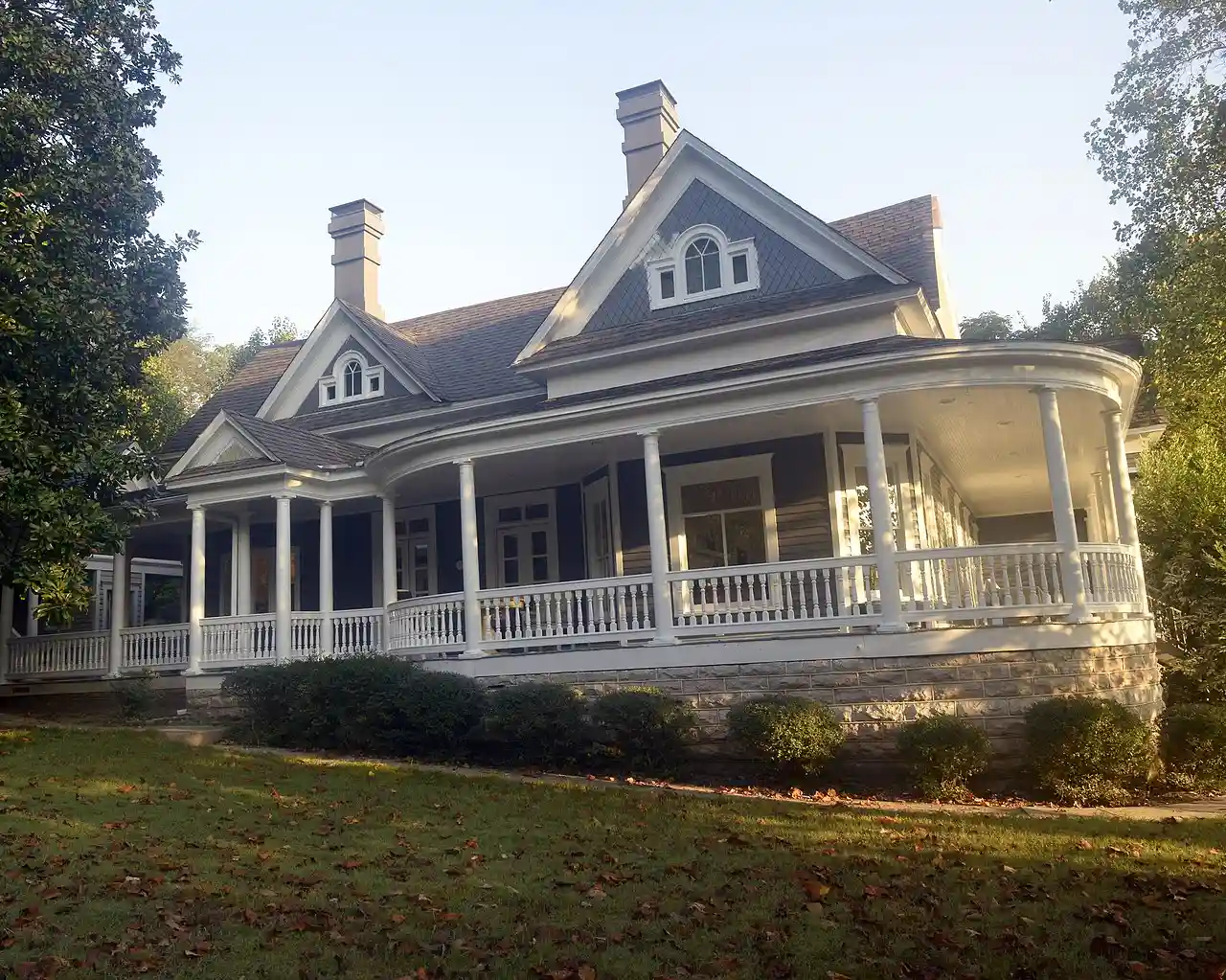 The Evans-Kirby House is a historic house at 611 South Pine Street in Harrison, Arkansas. It is a two-story wood-frame structure on a sandstone foundation, with a busy roofline and asymmetrical massing typical of the Queen Anne style. The roof is punctuated with five dormers of different sizes and shapes, and the walls are finished with clapboards and decoratively-cut shingles. The porch is adorned with spindled friezes and brackets. The property also includes a period barn/carriage house and garage, the latter over an original smoke cellar. The house was built in 1895 for Dr. E.L. Evans, who sold it in 1906 to his brother-in-law, Dr. Frank Kirby. Read more on Wikipedia