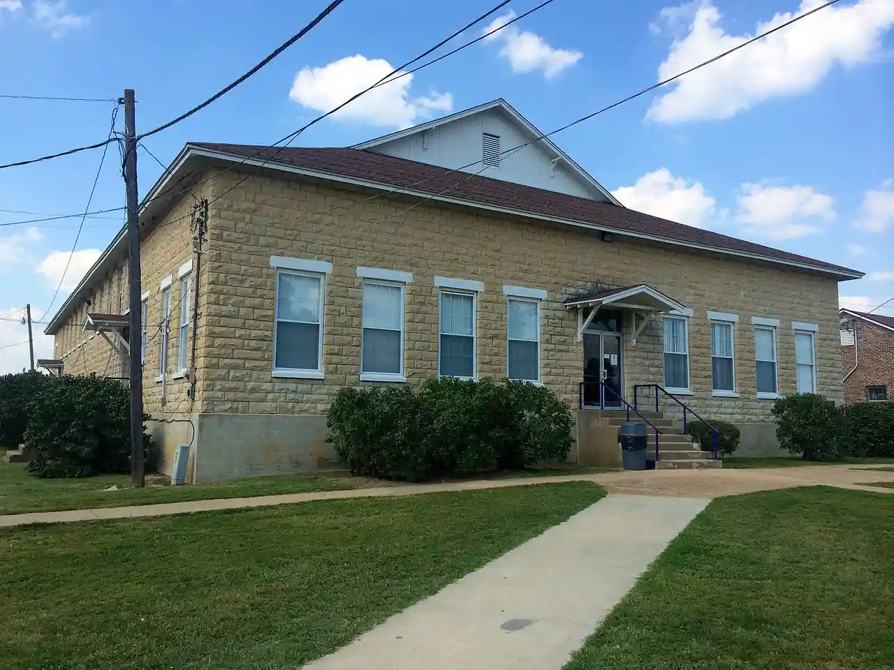 The Berryville Gymnasium is a historic school building, located in a large school complex on the west side of Berryville, Arkansas. It is a single-story stone masonry structure, with a gable-on-hip roof. It is taller to accommodate the height of the gymnasium within, and has a second row of windows across some facades to provide added illumination into that facility. The building was constructed in 1936–37 with funding assistance from the Works Progress Administration. Read more on Wikipedia