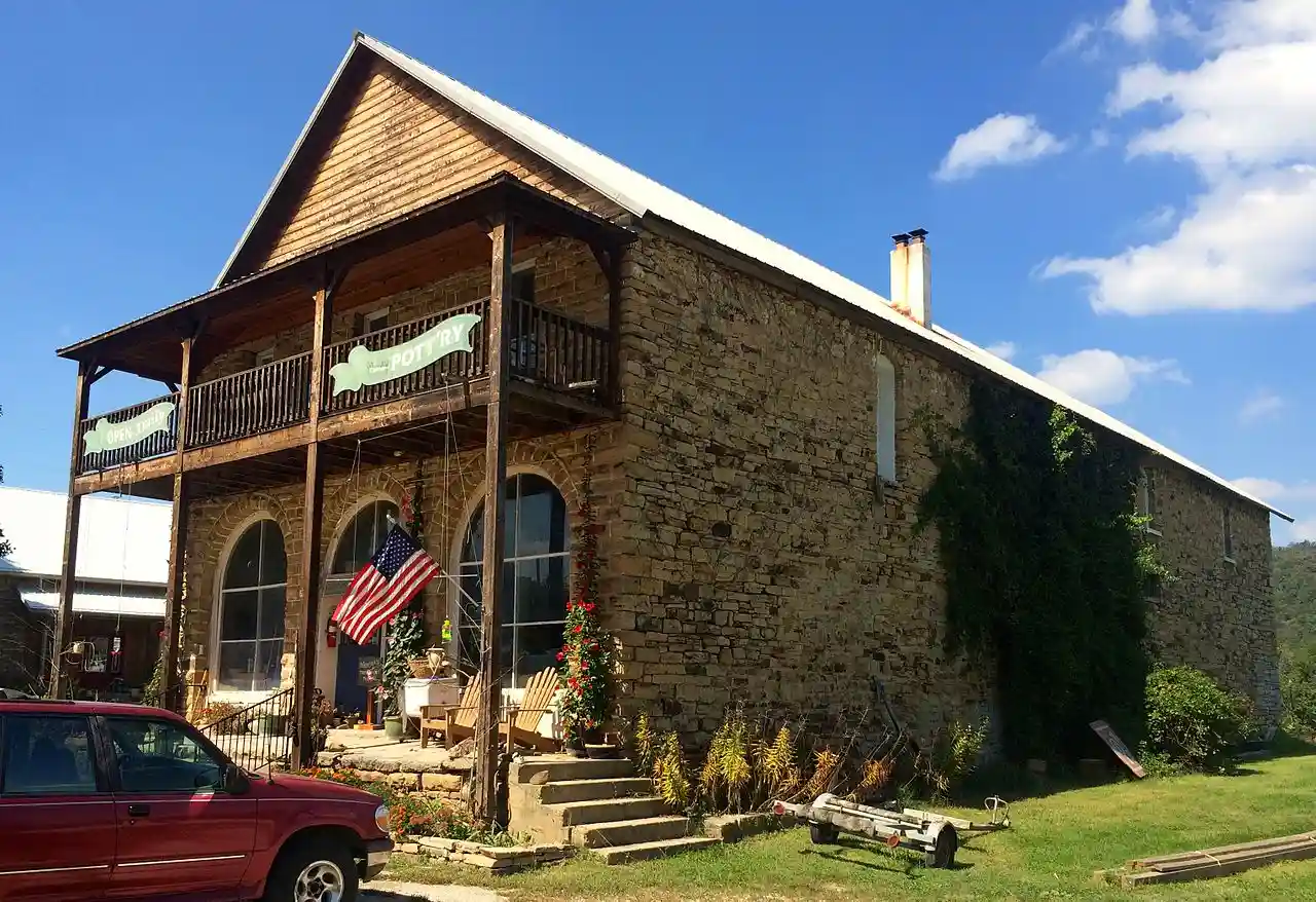 The Stamps Store is a historic commercial building on Arkansas Highway 103 in Osage, Arkansas, a hamlet off United States Route 412 between Alpena and Huntsville. It is a -story stone structure, with a front-gable roof, and vernacular Romanesque Revival styling. The first floor was originally a large open retail space used as a general store, the second floor was a residential space for the proprietor, and the upper half-story was a meeting space. It was built 1899-1902 by Willie and Millie Sneed, and was operated by the Stamps family from 1912 to 1990. It was listed on the National Register of Historic Places in 1990 for its architecture and its historical importance to the small community. Read more on Wikipedia