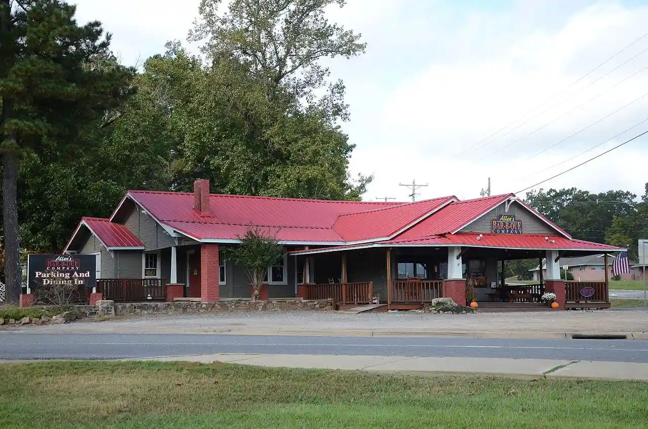 The C. E. Thompson General Store and House is a historic property at 3100 Hollywood Road (at the junction of Highways 26 and 8) in Arkadelphia, Arkansas. Its principal structure is a single-story wood-frame with a gable roof, which was built in 1936 and served as a residence for the Thompson family and as a general store until it closed in the 1980s. It is the only Craftsman-style general store building in Arkadelphia. The building currently houses Allen's Barbeque, a local barbeque restaurant. Read more on Wikipedia
