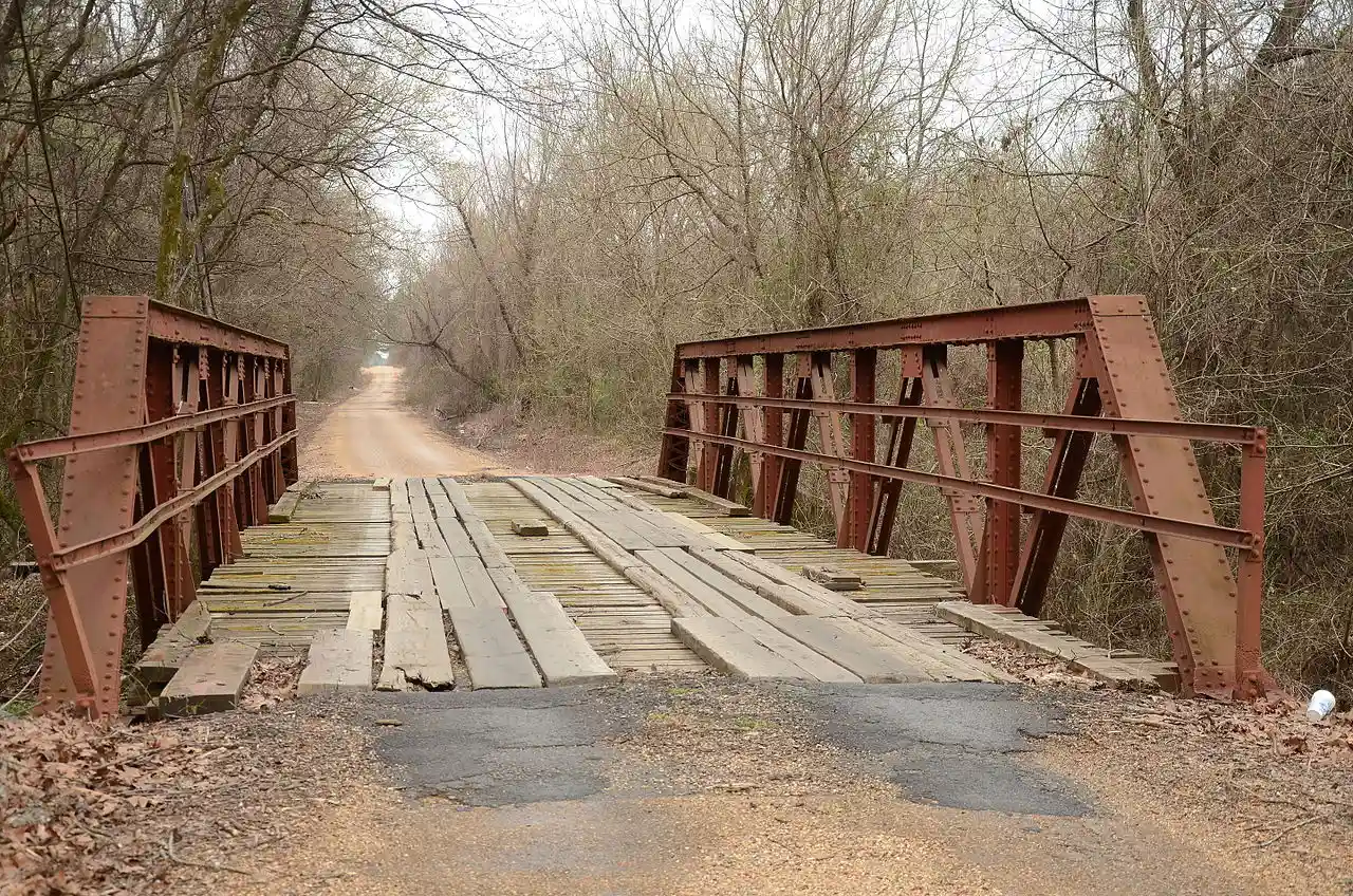 The McNeely Creek Bridge is a historic bridge spanning McNeely Creek just outside Beirne, Arkansas, a village in southwestern Clark County. The bridge, a steel Warren pony truss bridge with a span of , carries County Route 12. Built in 1923, it has a wooden deck wide. Read more on Wikipedia