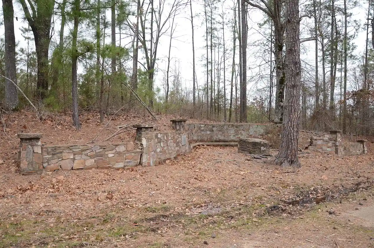 The Old US 67 Rest Area is a historic roadside rest area in rural Clark County, Arkansas. It is located in on the west side of U.S. Route 67 (US 67) and an old paved section formerly designated Highway 51, between the small towns of Curtis and Gum Springs. The rest area consists of a semicircular fieldstone retaining wall, which is segmented by six fieldstone pillars. A semicircular concrete bench stands facing a fieldstone well. The rest area was built five years after US 67 was paved in 1931, by the National Youth Administration, a federal New Deal agency, and the state highway department. Read more on Wikipedia