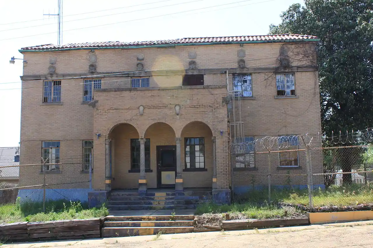 The Columbia County Jail is a historic structure at Calhoun and Jefferson Streets in Magnolia, Arkansas. The brick two story structure in Umatilla County was designed by Thompson & Harding and was built c. 1920, and is an excellent local example of Italian Renaissance architecture. It is faced in cream-colored brick, and has a terracotta hipped roof. It has an entrance portico with round arches supported by slender columns and gargoyles at its corners. Read more on Wikipedia