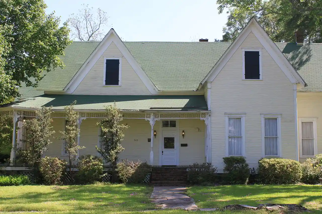 The Couch-Marshall House is a historic house at 505 West Monroe Street in Magnolia, Arkansas. The oldest portion of this house, now the rear, began as a vernacular Greek Revival cottage built c. 1840 by Thomas G. Couch. In the 1890s this structure was significantly expanded and restyled in the then-popular Queen Anne style, although it retains some Plain Traditional influence. It has the asymmetrical and irregular massing typical of the Queen Anne style, with gabled dormers and projecting gabled bays, and a porch with elaborate jigsaw-cut detailing. Read more on Wikipedia