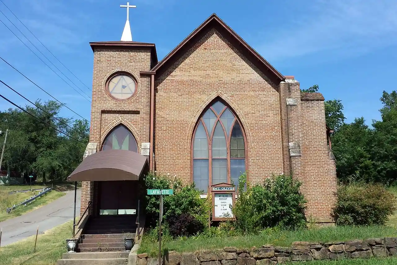 The Mount Olive United Methodist Church is a historic church at Lafayette and Knox Streets in Van Buren, Arkansas. It is a rectangular single-story brick structure with Gothic Revival styling. Its main facade has a large Gothic-arch window below the main roof gable, and a squat square tower to its left, housing the entrance in a Gothic-arched opening. The church was built in 1889 for a congregation that consisted of recently emancipated African-American former slaves when it was organized in 1869. It is a significant local landmark in its African-American culture and history. Read more on Wikipedia