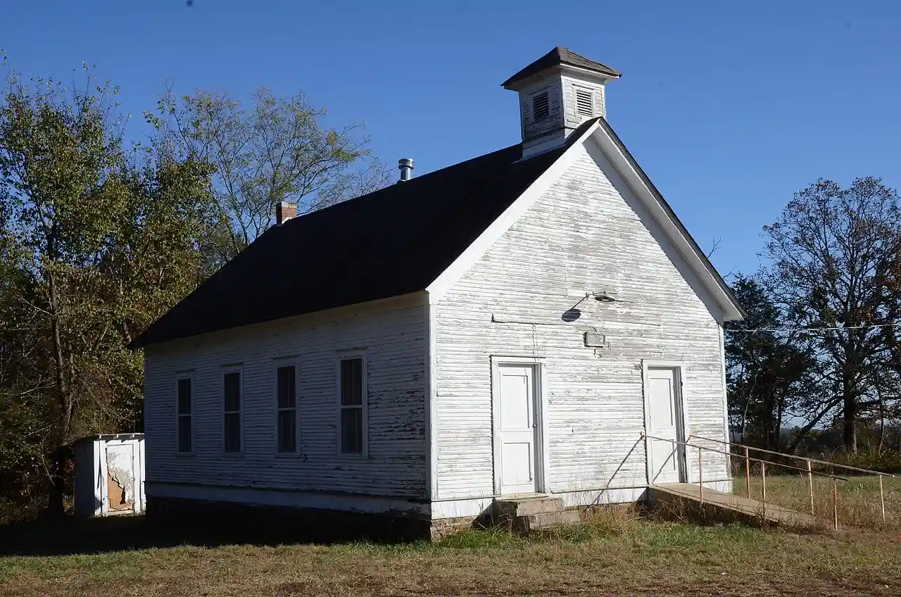 The No. 12 School is a historic one-room schoolhouse building in rural Crawford County, Arkansas. It is located on the east side of Freedom Road, a short way north of its road junction with Old 12 Cross Roads about west of Chester. It is a single-story wood vernacular frame structure with a small belfry and two entrances. Its date of construction is not documented, but it was being used as a district school in the late 19th century, a role it fulfilled until the area's district schools were consolidated in 1946. It has since served as a community meeting hall. With six photos from 1995. () Read more on Wikipedia