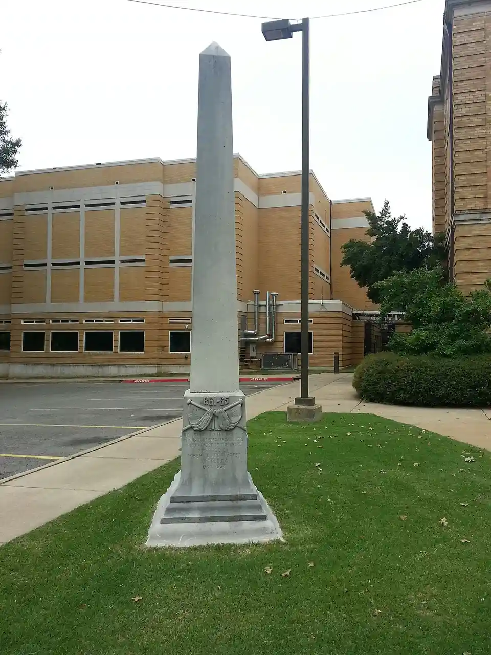 The Conway Confederate Monument stands on the lawn of the Faulkner County Courthouse, east of the junction of Robinson Avenue and Center Street in Conway, Arkansas. It is a stone obelisk, in height, with a square base on each side. The east face bears the inscription "1861-65 / (carving of crossed flags) / DEDICATED TO THE MEMORY / OF OWR CONFEDERATE SOLDIERS / THE Read more on Wikipedia