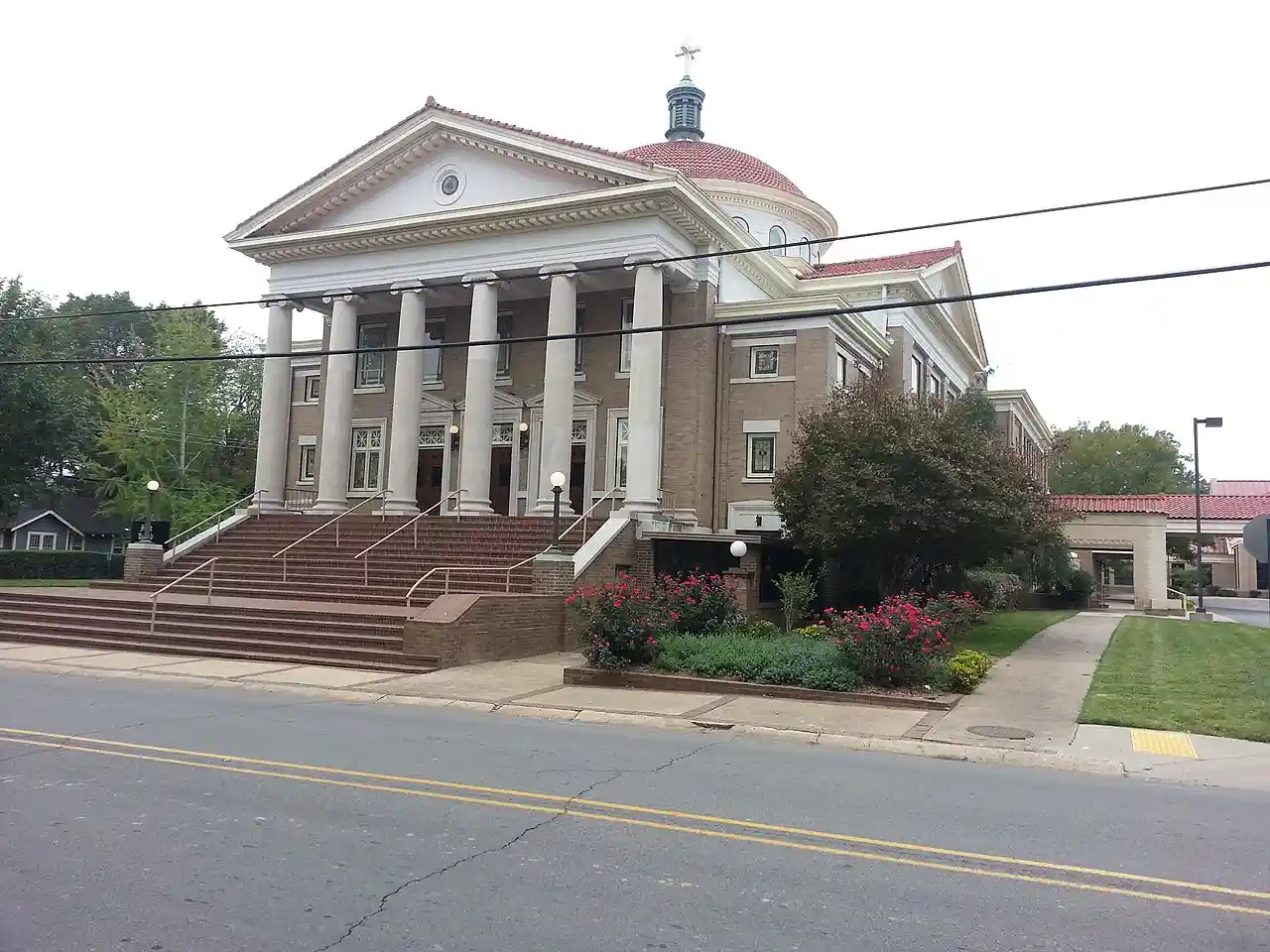 First United Methodist Church is a historic Methodist church at the junction of Prince and Clifton Street in Conway, Arkansas. It is a two-story brick building with Classical Revival style, set on a raised foundation. The building is basically rectangular in shape, but its main roof is cruciform, with gables on all for sides, and a dome at the center. The front has a fully pedimented six-column Classical portico, with an entablature and dentillated pediment with a small round window at its center. The church was designed by George W. Kramer of New York City, and built in 1913 for a Methodist congregation founded in 1871. Read more on Wikipedia