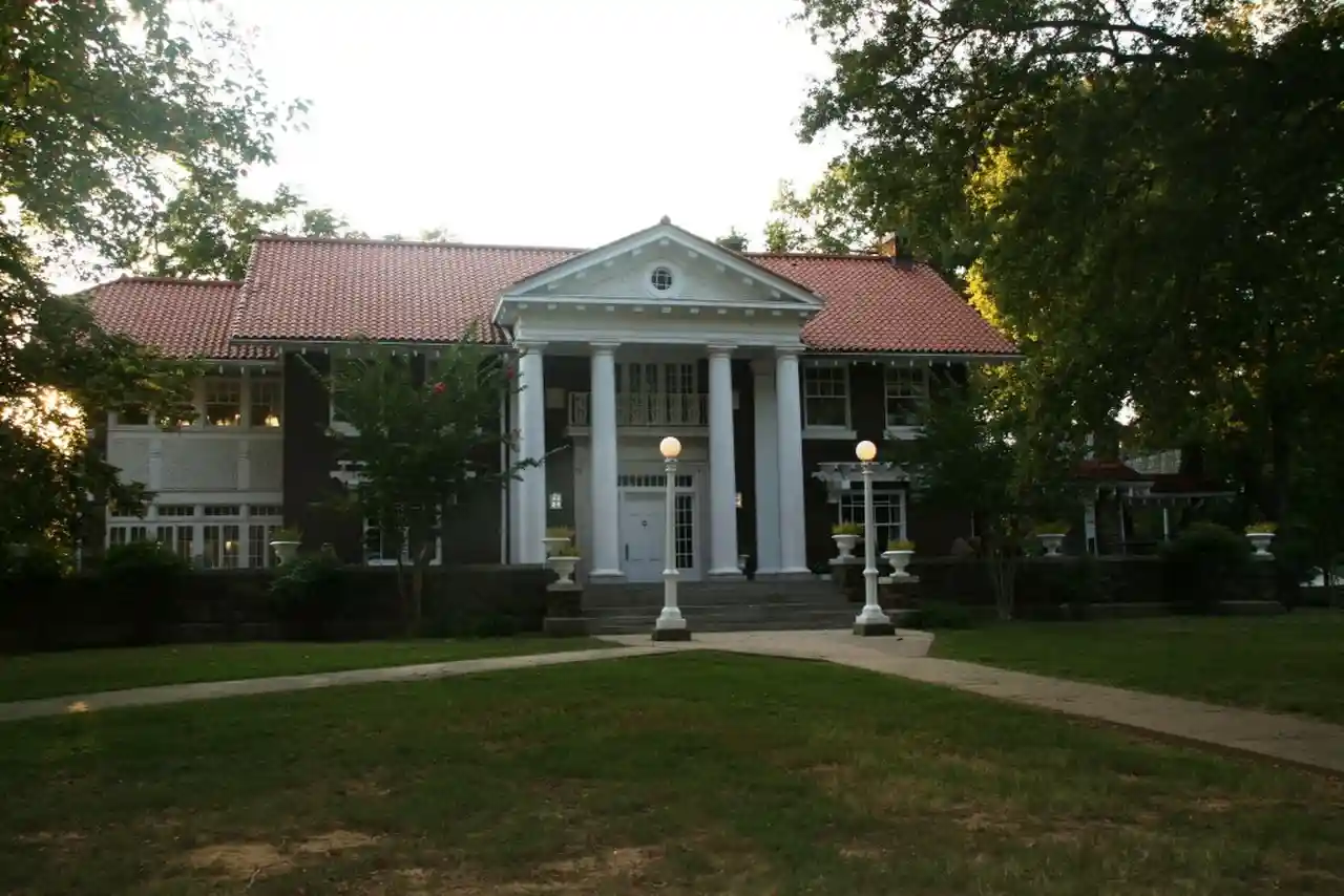 The Frauenthal House is a historic house in Conway, Arkansas. It was designed by Charles L. Thompson and built in 1913, exhibiting a combination of Colonial Revival, Georgian Revival, and Craftsman styling. It is a two-story brick building, topped by a gabled tile roof with exposed rafter ends in the eaves. A Classical portico shelters the entrance, with four Tuscan columns supporting an entablature and full pedimented and dentillated gable. The house, with 22 rooms, was built for Jo and Ida Baridon Frauenthal and is currently occupied by the Conway Regional Health Foundation. Read more on Wikipedia