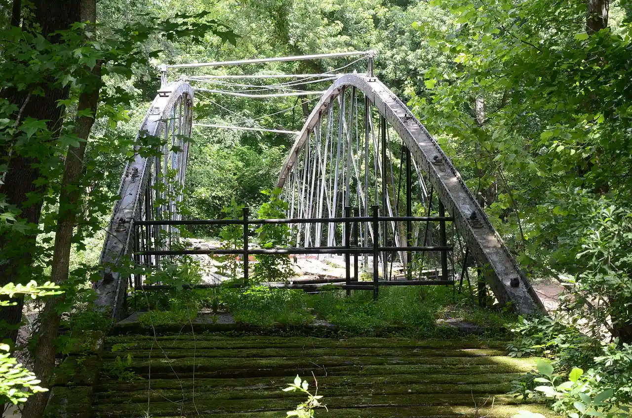 The Springfield Bridge is a historic bowstring truss bridge, located in Beaverfork Lake Park in Conway, Arkansas, USA. It originally spanned Cadron Creek in rural Faulkner County east of Springfield. It is long, set on stone abutments, with tubular metal top chords that rise above the bottom chords. Built circa 1871–74, it is the oldest documented highway bridge in the state and its only documented bowstring arch bridge. Read more on Wikipedia
