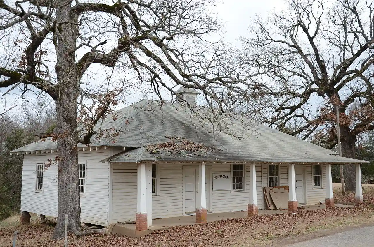 The Center Cross School is a historic school building at the junction of West Creek Road and West College Road in rural Franklin County, Arkansas, west of Altus. It is an L-shaped single-story wood-frame building, with a hip roof and weatherboard siding. A porch extends across the long front, the main roof extending over it, with box columns for support. The school was built in 1930, during a period of prosperity. Includes two photos from 1990. () Read more on Wikipedia