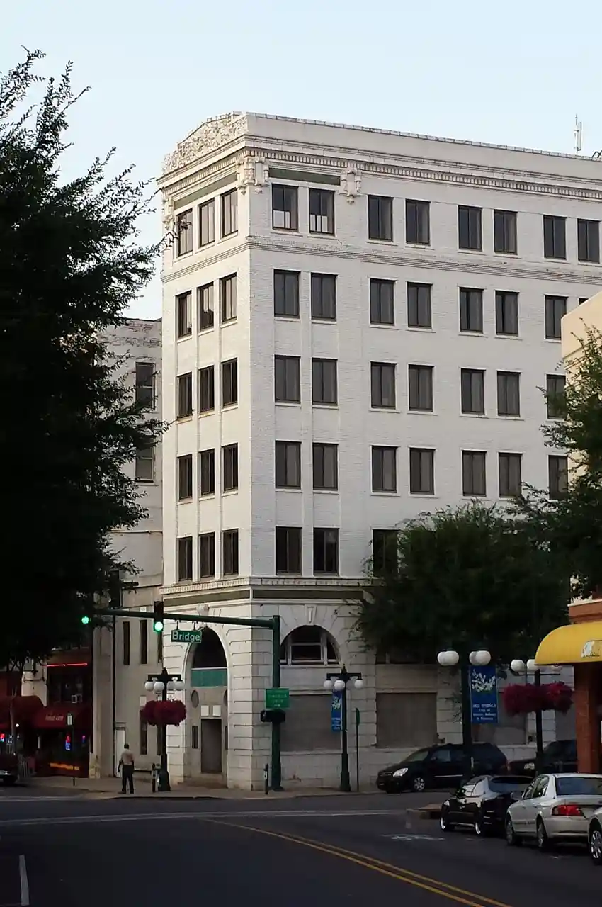 The Citizens Building is a historic commercial building at 723 Central Avenue in Hot Springs, Arkansas. It is a narrow six-story steel and masonry structure, built in 1911–12. It was the first skyscraper to be built in Hot Springs, and was immediately noted for its dignified exterior. The first floor consists of a colonnade of stone arches, above which four identical floors rise, finished in white glazed brick manufactured by the Leon Tiffany Company. The top floor is set off from the lower floors by a band of corbelling, and is topped by a dentillated cornice. Read more on Wikipedia
