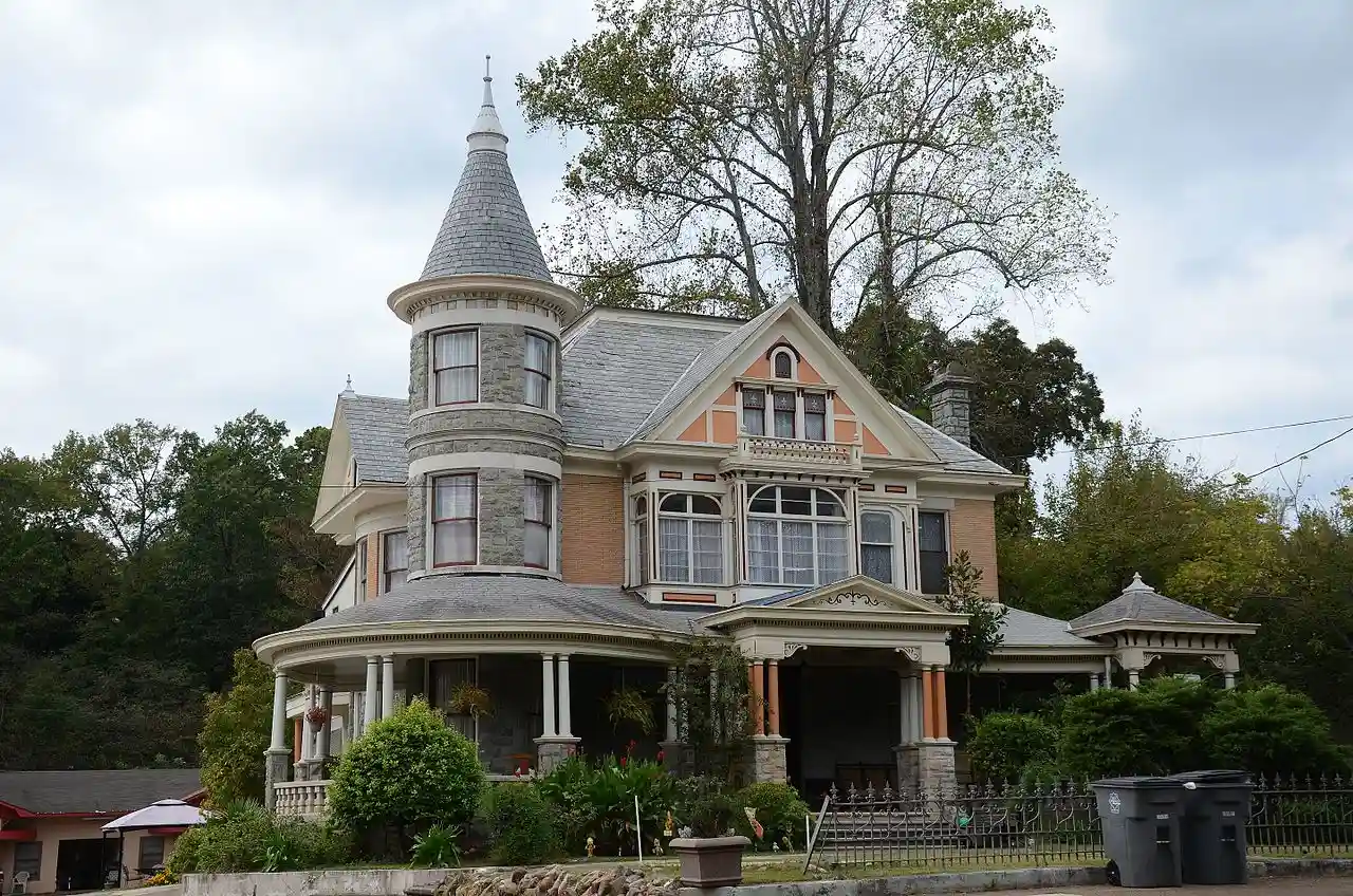 The Short-Dodson House is a historic house at 755 Park Avenue in Hot Springs, Arkansas. It is a -story masonry structure, its exterior finished in a combination of stone, brick, and wood. It has asymmetrical massing with projecting gables of varying sizes and shapes, and a round corner turret, with an undulating single-story porch wrapping around its south side. It was designed by Joseph G. Horn, and built c. 1902 for Dr. Omar Short, one of many doctors whose homes lined Park Avenue. Read more on Wikipedia