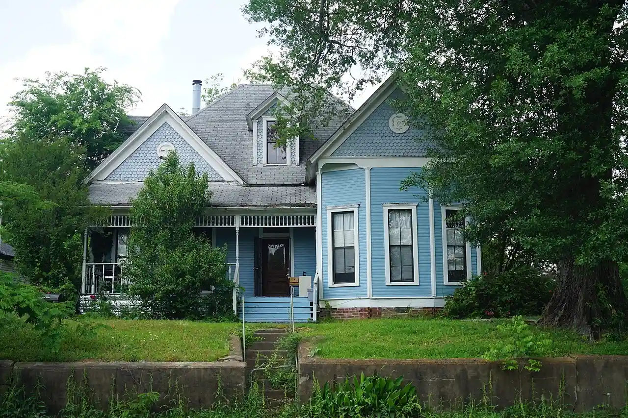 The Ward-Jackson House is a historic house at 122 North Louisiana Street in Hope, Arkansas. The -story wood-frame house was built sometime in the 1890s, and is a particularly fine local example of Folk Victorian architecture. It has a busy exterior typical of Queen Anne styling, including different types of cut shingles, and has a porch with turned-spindle balustrade, and an Eastlake-style frieze. The windows are long and narrow, giving the house a somewhat Gothic appearance. Read more on Wikipedia