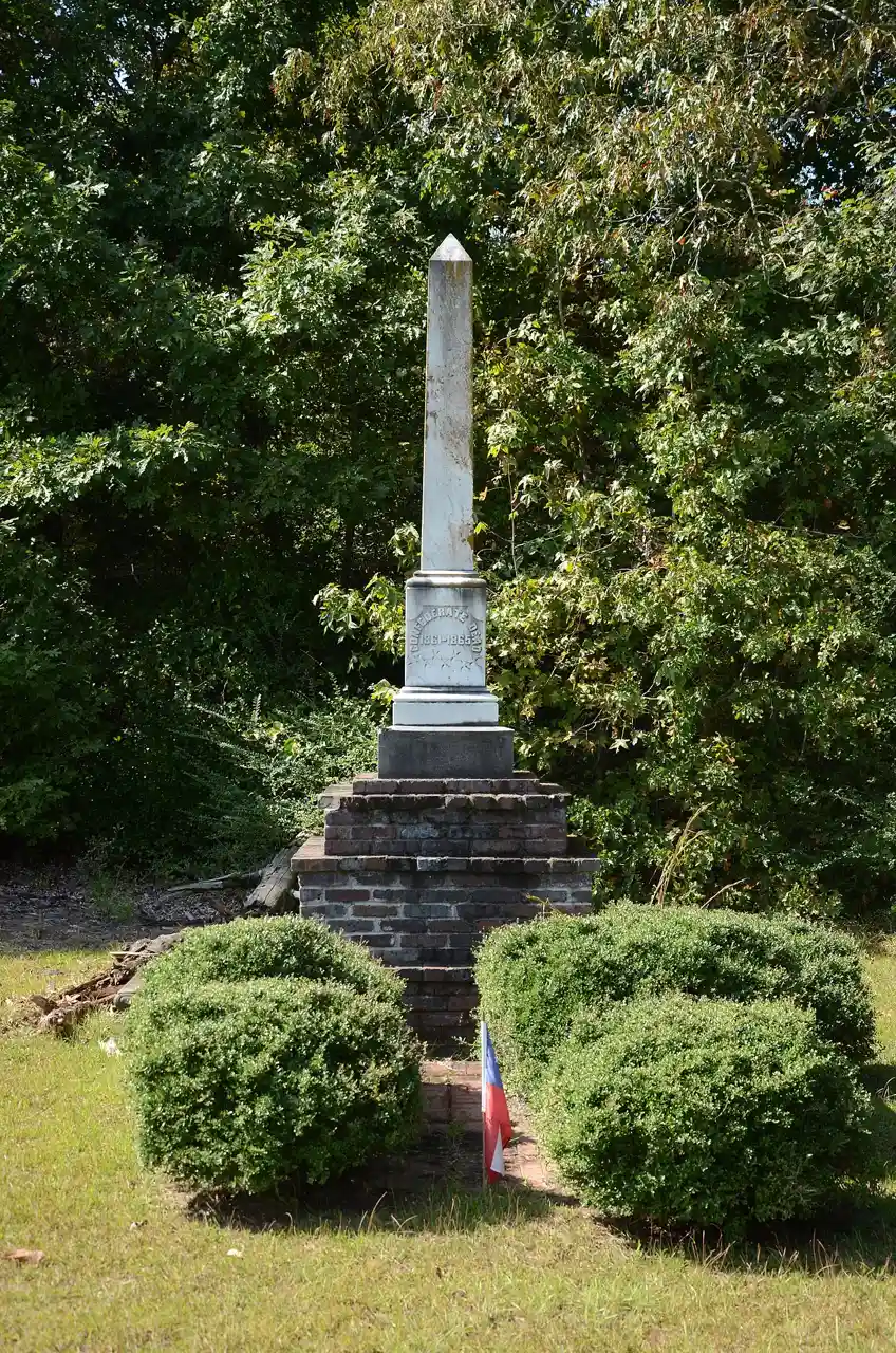The Washington Confederate Memorial is located in the Washington Presbyterian Cemetery, off United States Route 278 on the northwest side of Washington, Arkansas. The memorial is a marble obelisk, 7'8" tall, which is mounted on a three-tiered brick base that is 4'10" tall. It marks the grave site of 74 unknown Confederate Army soldiers, many of whom were killed in the 1863 Battle of Prairie D'Ane. The monument was raised by public subscription in 1888, and underwent restorative maintenance as recently as 1994. Read more on Wikipedia