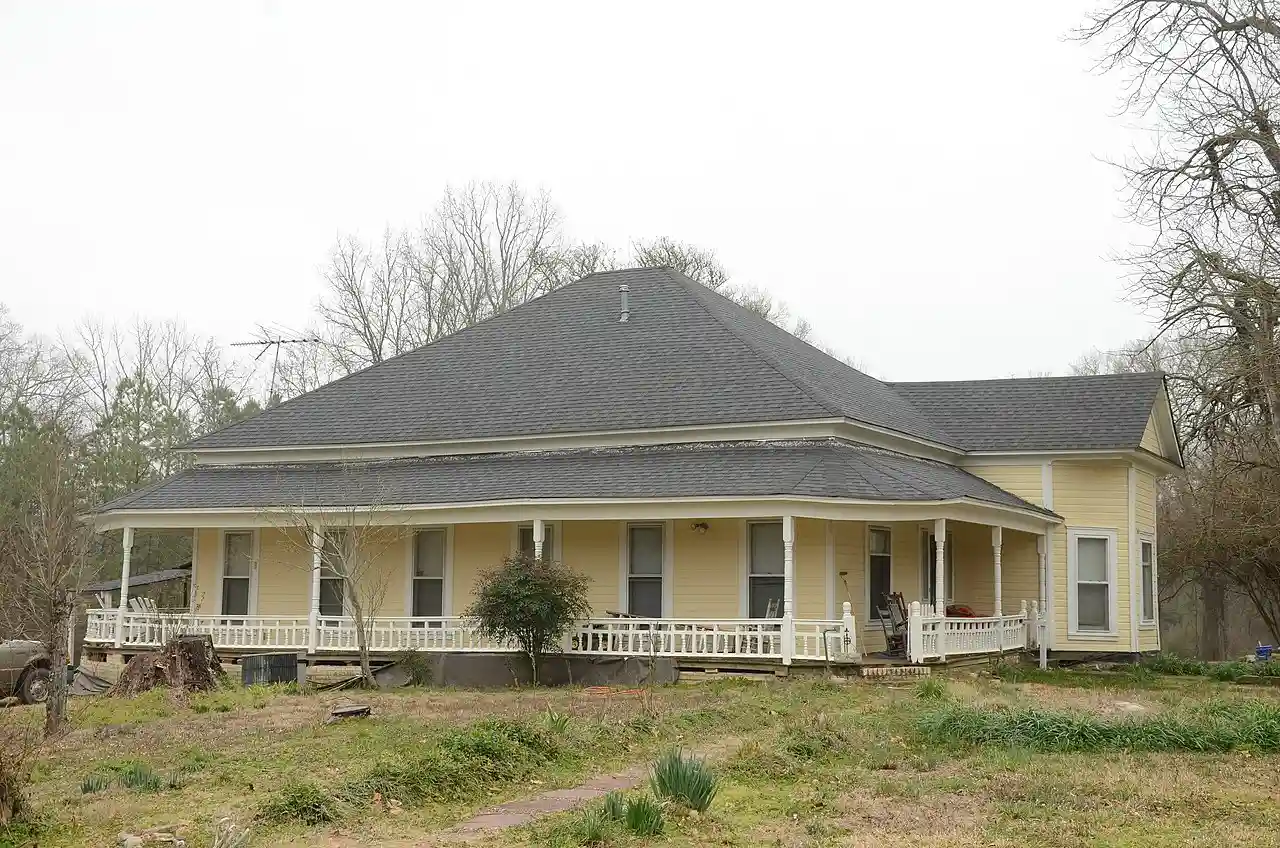The Hodges House is a historic house on the east side of Arkansas Highway 7 south of the rural community of Bismarck, Arkansas. It is a distinctive single-story wood-frame house, with a projecting polygonal bay at one corner, and a porch that wraps around three sides of the house. The porch is supported by turned posts and has an elaborate Folk Victorian balustrade. The house was built in 1907 by Lee and Clara DeBray, and was sold to Thomas and Charlotte Hodges in 1925. Both of the Hodgeses were leading figures in the early development of archaeology in the state of Arkansas, amassing a collection of more than 50,000 artifacts, and occupying leadership positions in the Arkansas Archaeological Society. The Menard–Hodges site, now a National Historic Landmark, was purchased by Hodges in order to control research and preservation activities. Read more on Wikipedia