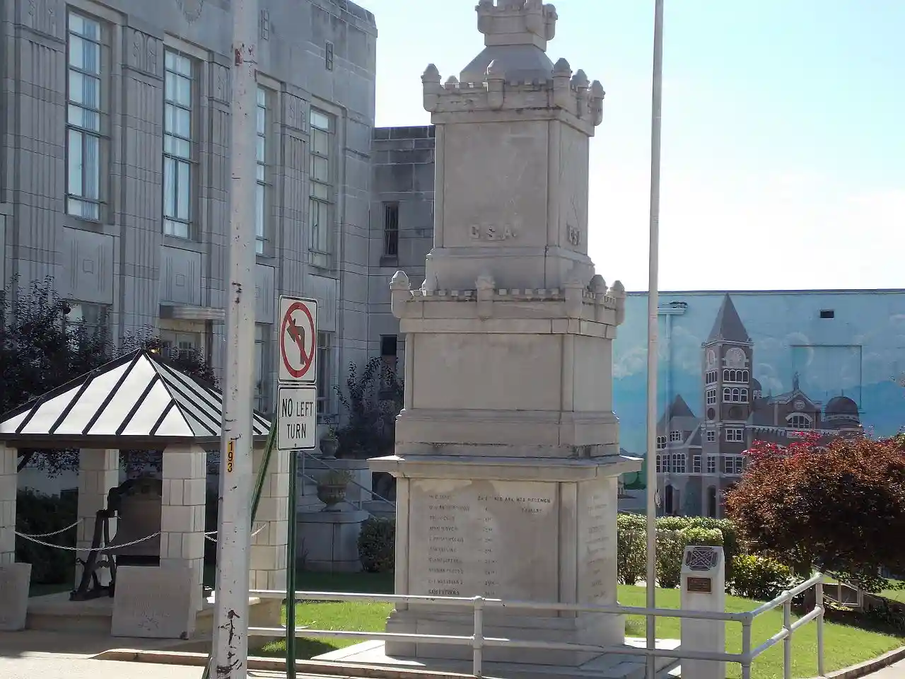 The Batesville Confederate Monument is located at the southeast corner of Main and Broad Streets in Batesville, Arkansas. It is a square monument, about in height, divided into four stages, and built out of local limestone. The first three-stage have a base trim element, and are unadorned except for inscriptions. The divider between the first and second stages is a projecting shelf, while that above the second and third stages resembles a turreted battlement. The monument was placed in 1907 by local chapters of the United Daughters of the Confederacy. Read more on Wikipedia