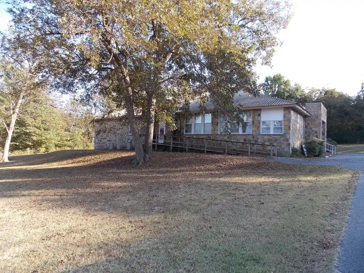 The Moorefield School is a historic former school building on Ham Street in Moorefield, Arkansas. It is a broad rectangular single-story building built out of fieldstone, with a gable-on-hip roof that has exposed rafter ends in the Craftsman style. Entrances on the north and west sides are set under parapeted square porches. The school was built in 1936–37 with funding from the National Youth Administration and served the community as a school until 1947. It now houses the Rehoboth Baptist Church. Read more on Wikipedia