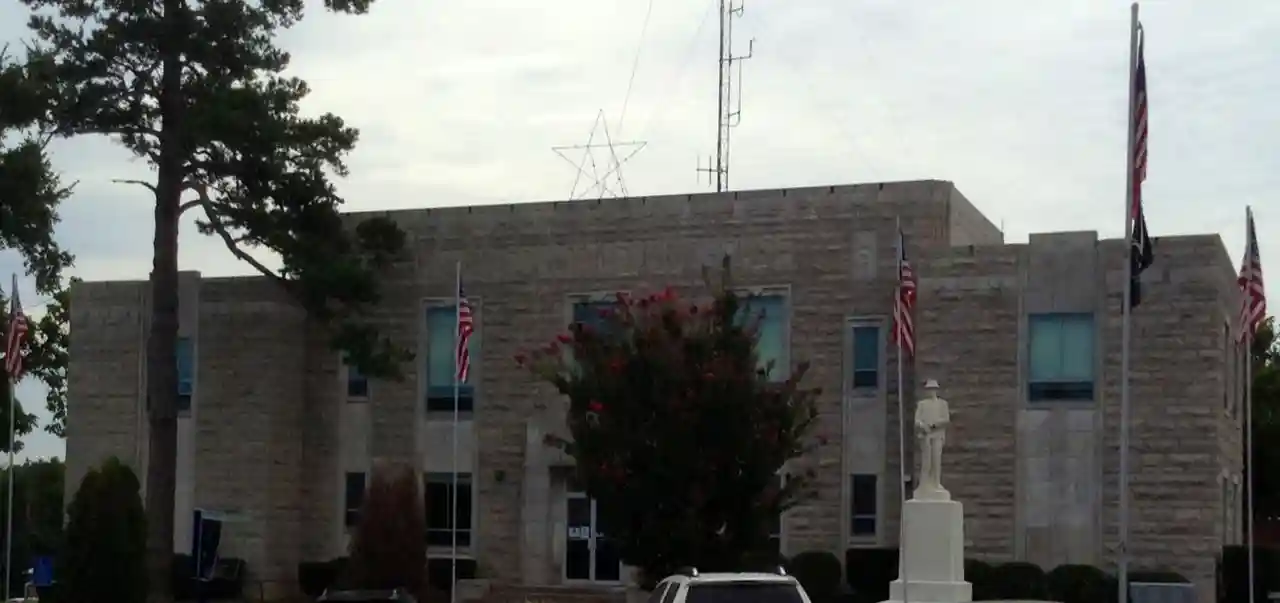 The Izard County Courthouse is located at Courthouse Square and Arkansas Highway 69 in Melbourne, the county seat of Izard County, Arkansas. It is a two-story structure, built of rusticated gray limestone, with modest Art Deco styling. The grounds include a World War I memorial featuring a marble doughboy statue erected in 1930 in front of the courthouse. It was built in 1938–1940 by crews from the National Youth Administration. It is the county's fourth courthouse, two of the first three having been destroyed by fire. Read more on Wikipedia