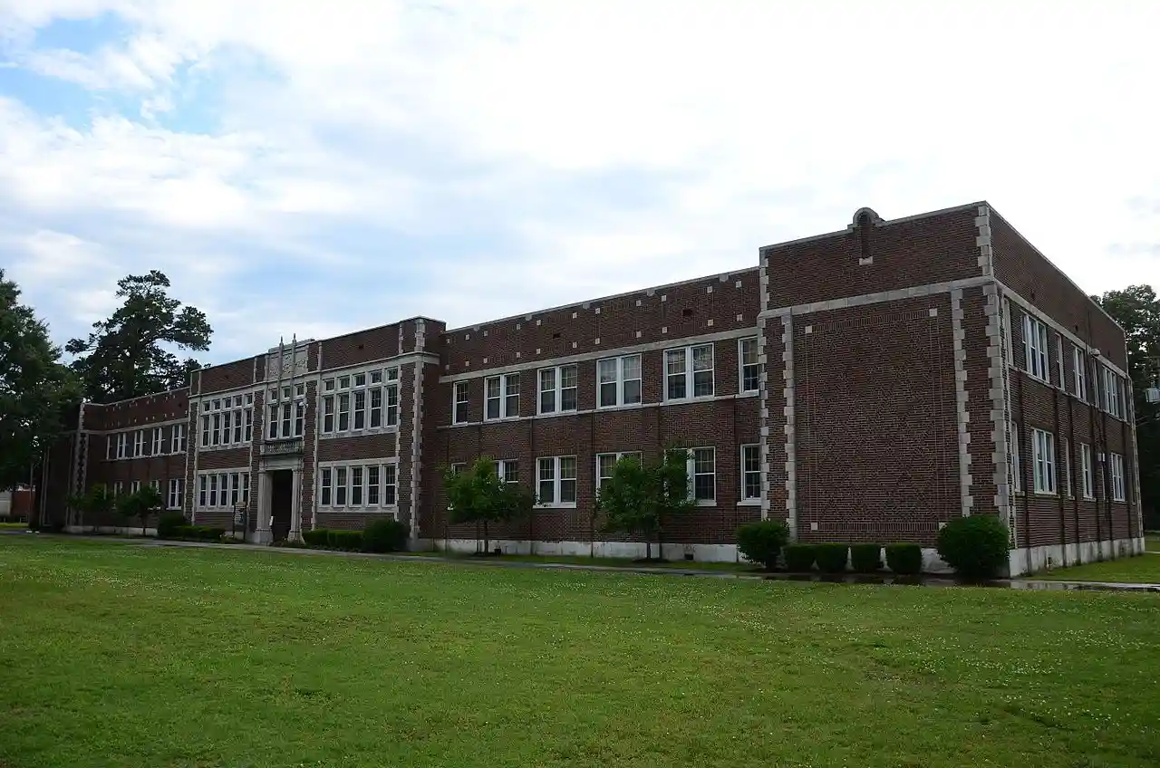 Caldwell Hall occupies a central position on the campus of the University of Arkansas at Pine Bluff in Pine Bluff, Arkansas. It is a large, T-shaped two-story brick building with Late Gothic Revival features, which was built in 1928 to a design by the noted Arkansas architectural firm Thompson, Sanders, & Ginocchio. Its central entrance section has Art Deco features in stone panels above the entrance, and fluted stone piers that rise to streamlined finials. Read more on Wikipedia