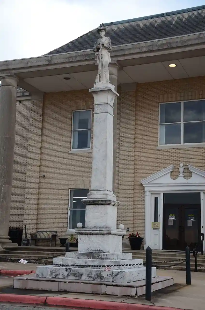 The Pine Bluff Confederate Monument has long been located in front of the Jefferson County courthouse, at Barraque and Main Streets in Pine Bluff, Arkansas. It depicts a standing Confederate Army soldier, holding a rifle whose butt rests on the ground. The statue, built out of Georgia marble by the McNeel Marble Company, stands on a stone base in height and at the base. It was placed in 1910 by the local chapter of the United Daughters of the Confederacy. Read more on Wikipedia