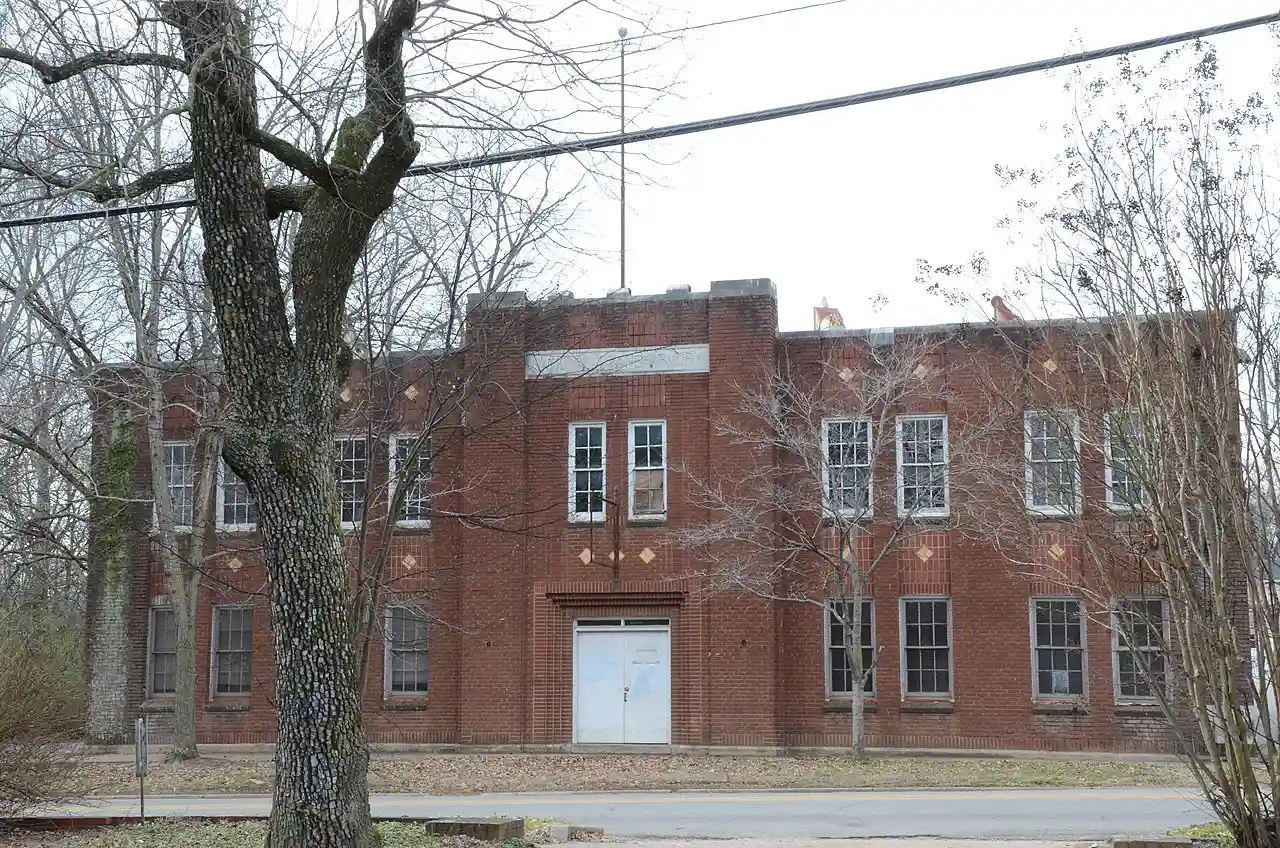 The Clarksville National Guard Armory is a historic former National Guard Armory at 309 College Street in Clarksville, Arkansas. It is a two-story building, finished in brick with restrained Art Deco styling. Its main facade is 10 bays wide, with a projecting section at the center housing two bays on the upper floor, and a double door entrance on the first. The entrance is set in a stepped recess, and it and the windows above are flanked by brick pilasters at the corner of the projection. The building was built in 1930, and served the Arkansas National Guard as a training and storage facility until 1980, after which ownership was turned over to the city. Read more on Wikipedia
