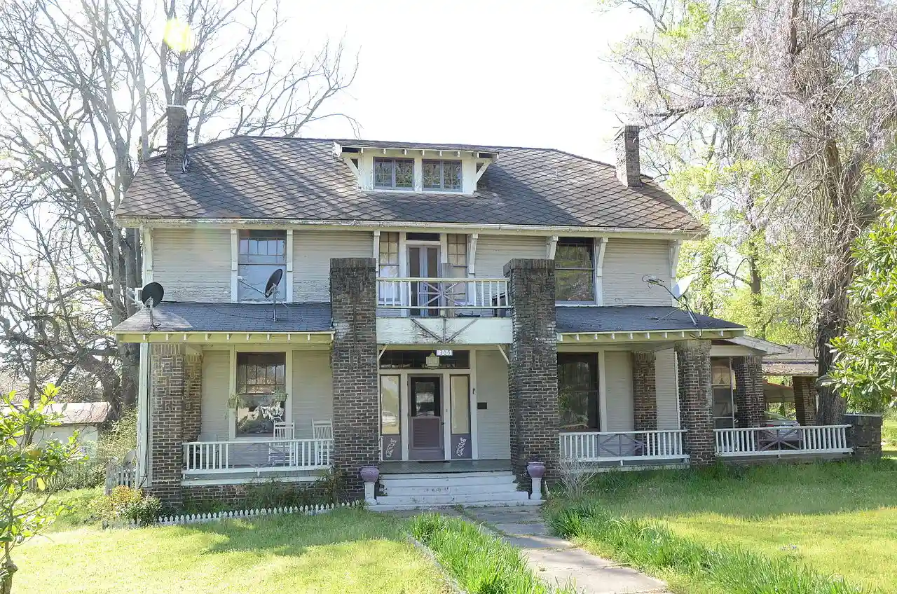 The P. D. Burton House is a historic house at 305 Chestnut Street in Lewisville, Arkansas. The two-story wood-frame house was built in 1916 for Percy Duffield Burtun, and is an excellent local example of American Craftsman architecture. Its features include a jerkinhead roof with exposed rafter ends, and a porch supported by large brick piers and large brackets. Read more on Wikipedia