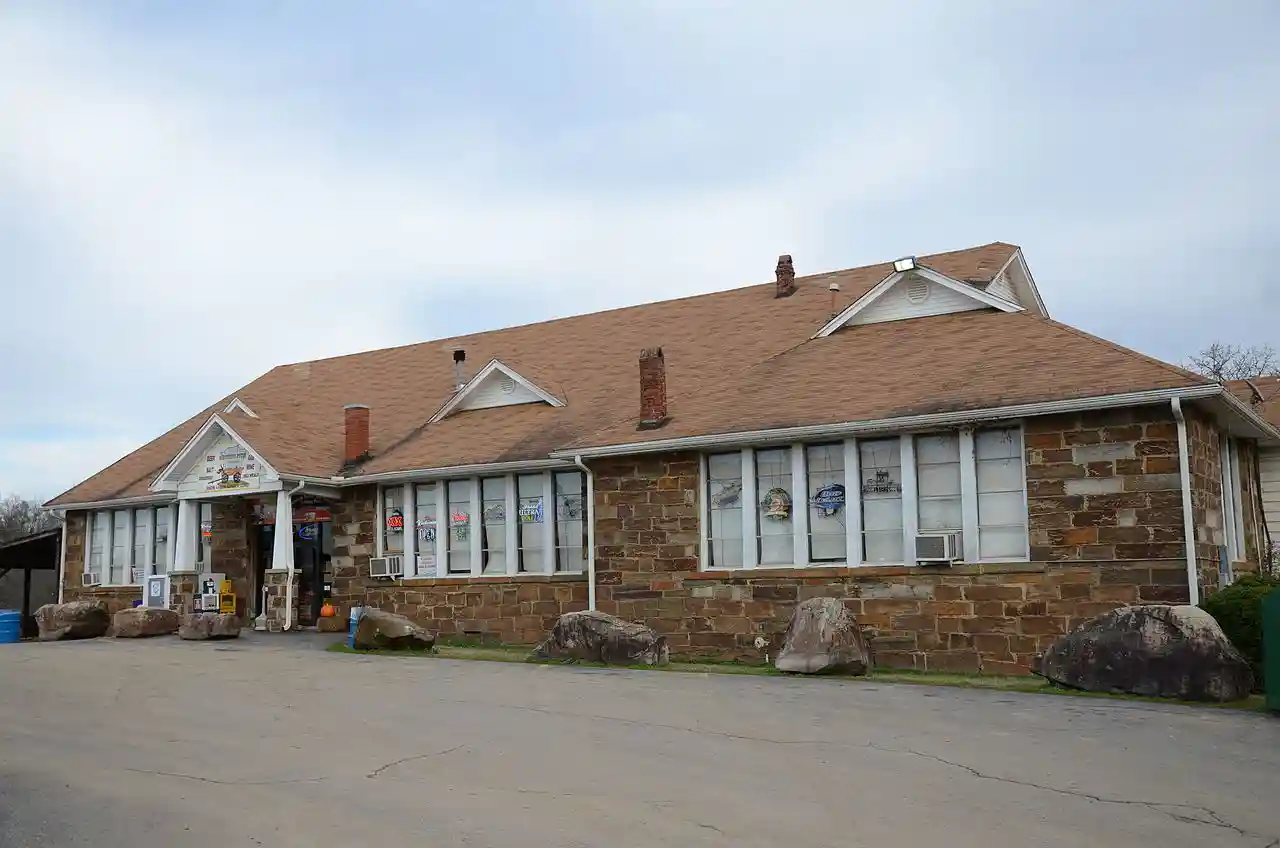 The New Blaine School is a historic school building at the junction of Arkansas Highway 22 and Spring Road in New Blaine, Arkansas. It is a single story masonry structure, built of coursed stone and covered by a complex gable-on-hip roof with triangular dormers. Its entrances are sheltered by Craftsman-style gabled porticos, supported by tapered square posts set on stone piers. It was built in 1925 by a local contractor to replace an older school. Read more on Wikipedia
