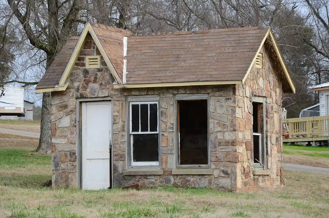 The Troy Lasater Service Station is a historic former automotive service station on Arkansas Highway 197 in New Blaine, Arkansas. It is a small single-story stone structure with a gabled roof, set in a small grassy area at the junction of AR 197 and Wood Lane. A cross gable is set above the entrance, which is on the left of the three-bay main facade. It was built in 1935 by Freeborn and Troy Lasater, and is a locally distinctive example of vernacular English Revival architecture. It was operated as a single-pump service station into the 1940s. Read more on Wikipedia