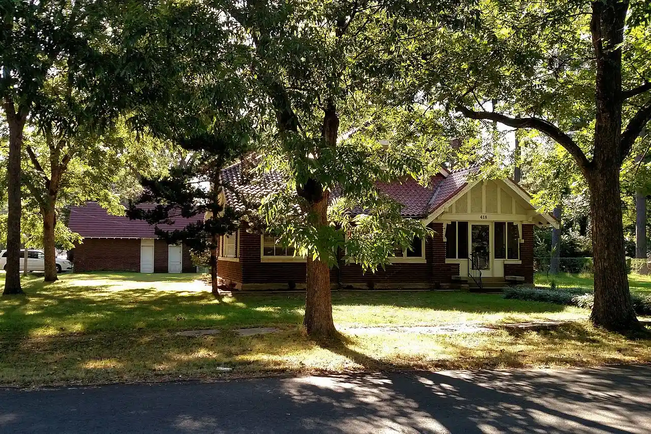 The Shull House is a historic house at 418 Park Avenue in Lonoke, Arkansas. It is a large -story building, its exterior clad in a combination of half-timbered stucco and brick. The roof is tiled, with clipped gables and eaves that show exposed rafter ends in the American Craftsman style. Windows are typically multipane casement windows in groups. The house was built in 1918 to a design by Thompson and Harding. Read more on Wikipedia