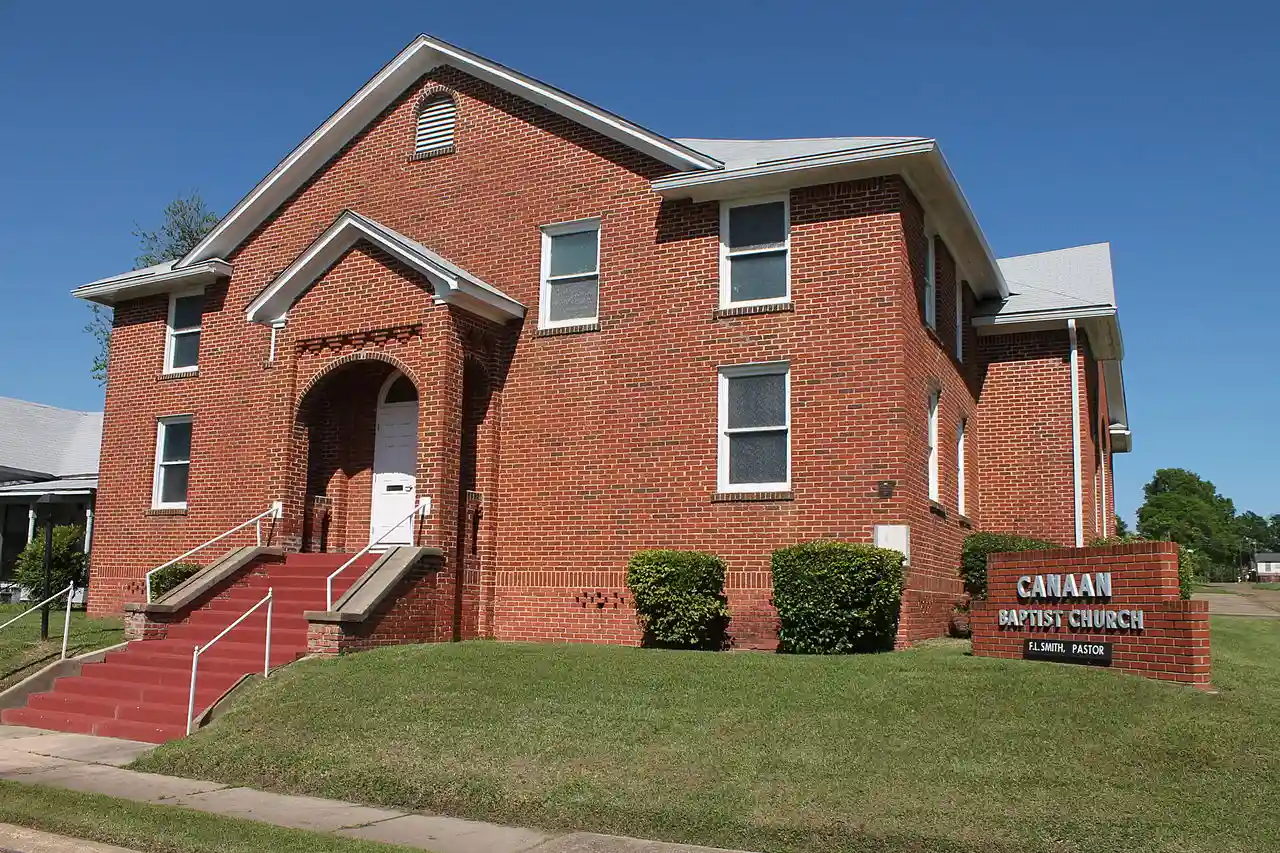 The Canaan Baptist Church is a historic church at the junction of Laurel and 10th Streets in Texarkana, Arkansas. The single-story brick church was built in 1929 for an African-American congregation established in 1883. The building was designed by S. C. Cox, and exhibits Colonial Revival styling with some Gothic details, primarily in its pointed-arch windows. Read more on Wikipedia