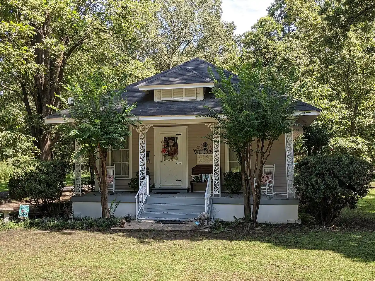 The Chris Tompkins House is a historic house at 144 South Oak Drive in Burdette, Arkansas. It is a single story wood-frame structure, with a broadly overhanging hip roof and dormer. A porch with wrought iron railing extends across the front of the house, and a carport, added in 1938, is on the north side. The house was built in 1903 by the Three States Lumber Company, a major lumber operator in the early decades of the 20th century in Mississippi County, as a residence for mid-level managers. Burdette was essentially a company town at the time, and this is one of two houses from the period to survive. Read more on Wikipedia