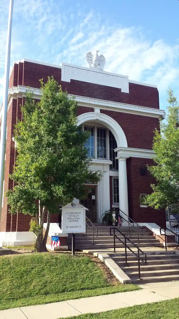 The Merchants and Planters Bank is a historic commercial building at 214 Madison Street in Clarendon, Arkansas. It is a handsome brick two-story building with Classical Revival styling, designed by the Arkansas architect Charles L. Thompson and built in 1921. The main facade has a tall stone arch supported by Tuscan columns, with the main entrance recessed behind. The top of the building has a parapet with a stone panel identifying the building, which has a stone eagle mounted on it. Read more on Wikipedia