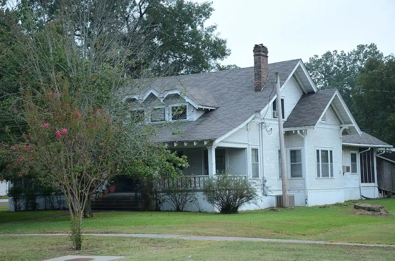 The D.L. McRae House is a historic house at 424 East Main Street in Prescott, Arkansas. This -story wood-frame house was designed by Charles L. Thompson and built c. 1912. It is a well-preserved example of Thompson's work in a small-town setting, featuring Craftsman styling and a relatively unusual porch balustrade, with groups of three slender balusters clustered between porch columns. Read more on Wikipedia